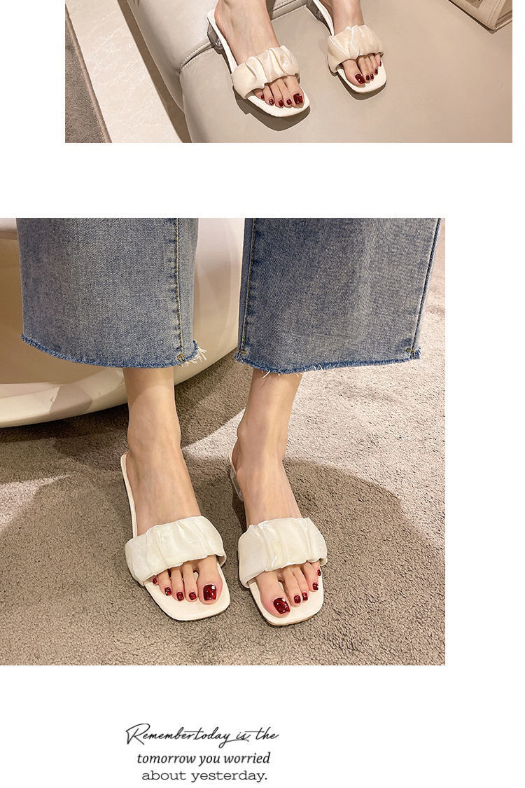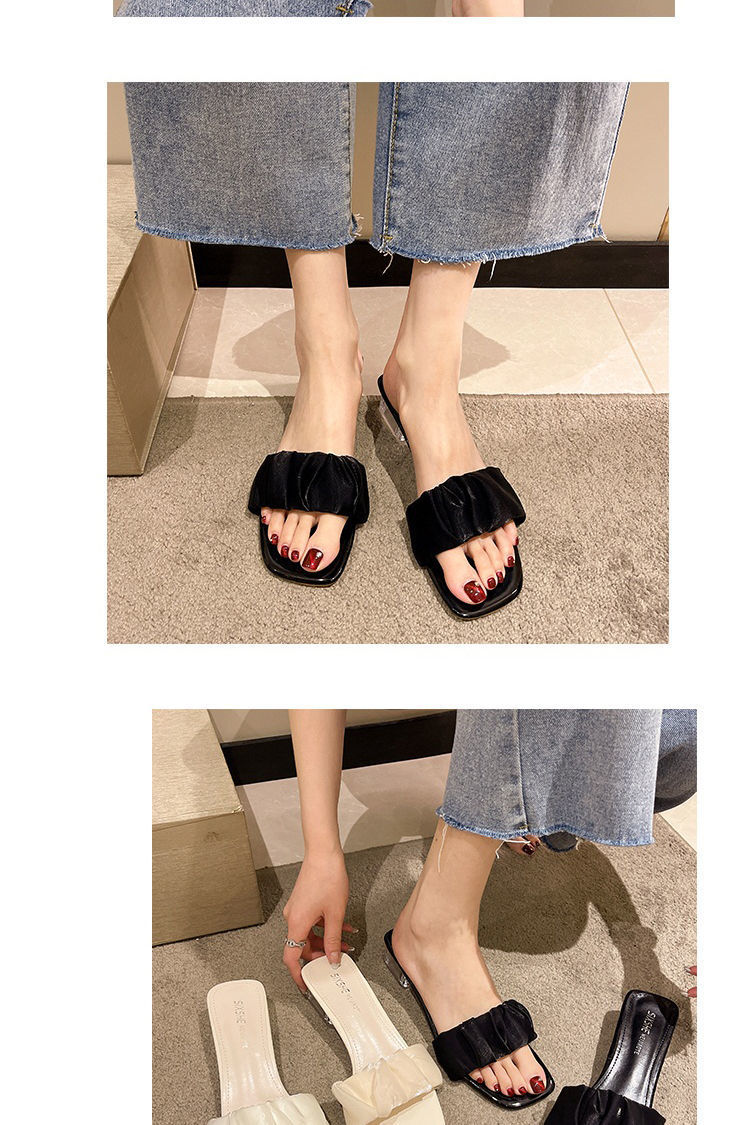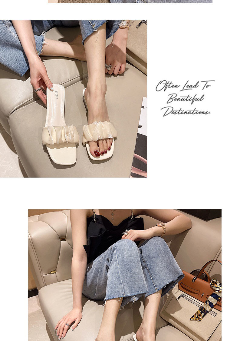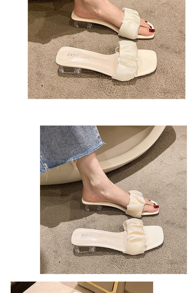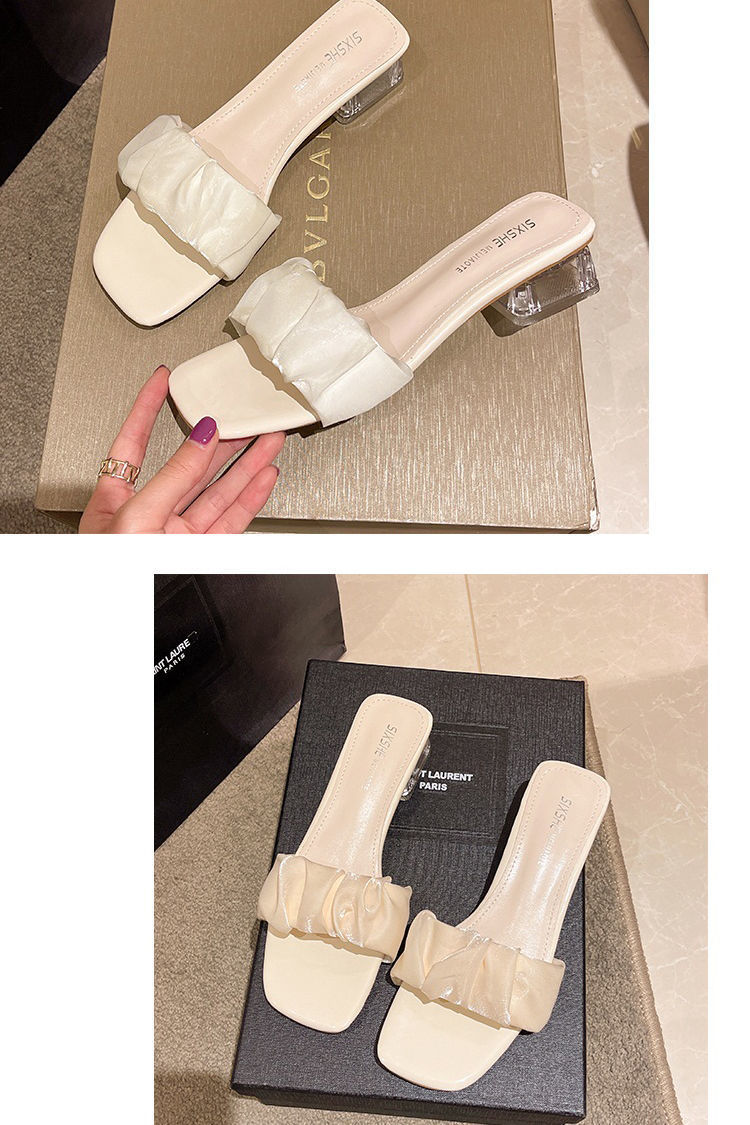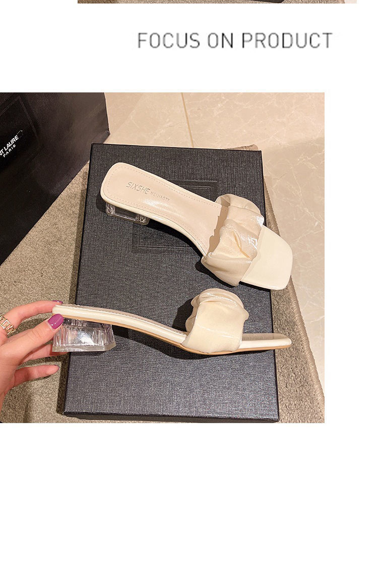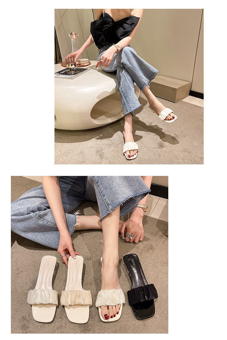 슬리퍼 여성용 여름 착용 2022 새로운 패션 페어리 스타일 크리스탈 두꺼운 힐 슬라이드 스퀘어 헤드 미드 힐 샌들