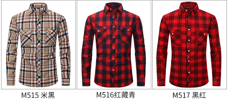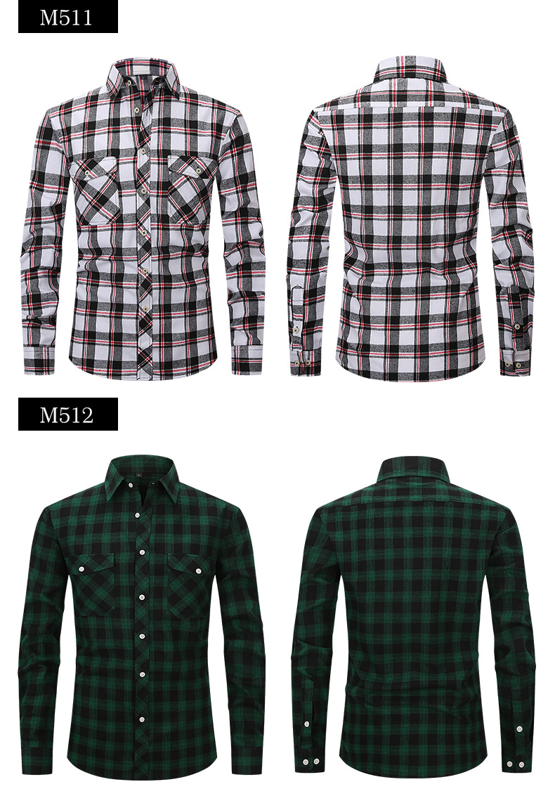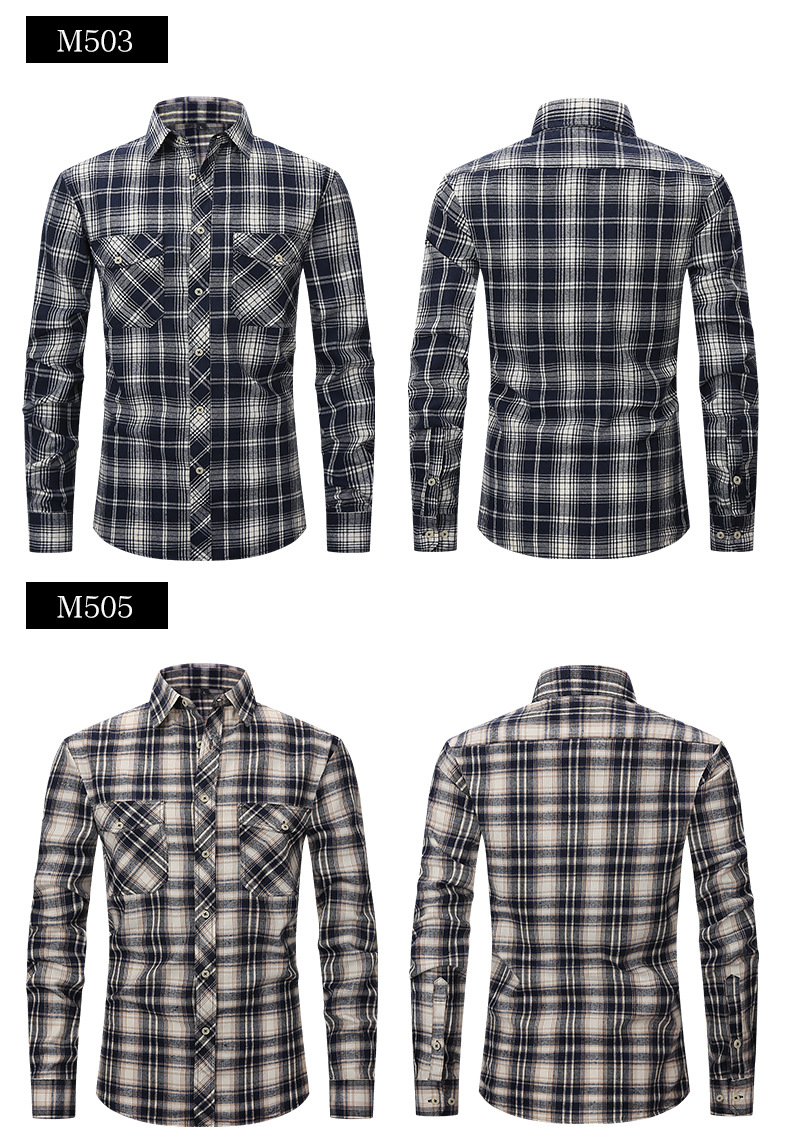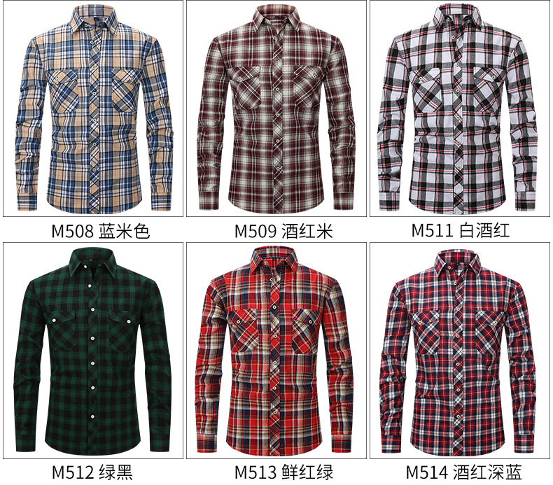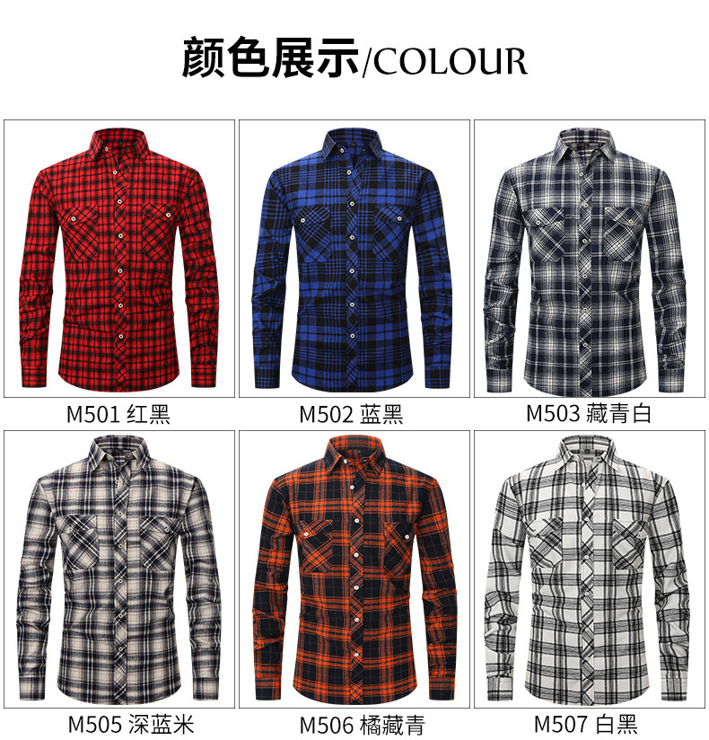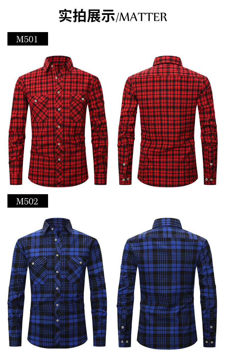 봄 여름 슬림핏 아마존 패션 기모 체크 무늬 하이 엔드 긴팔 더블 포켓 플란넬 남성 셔츠