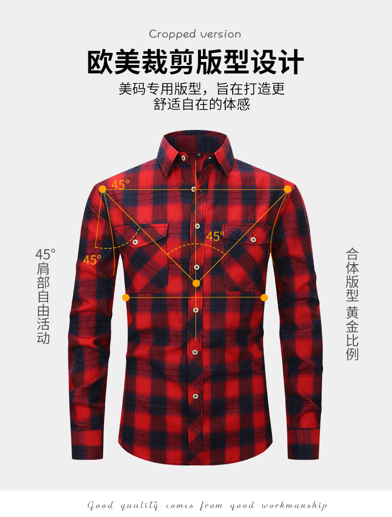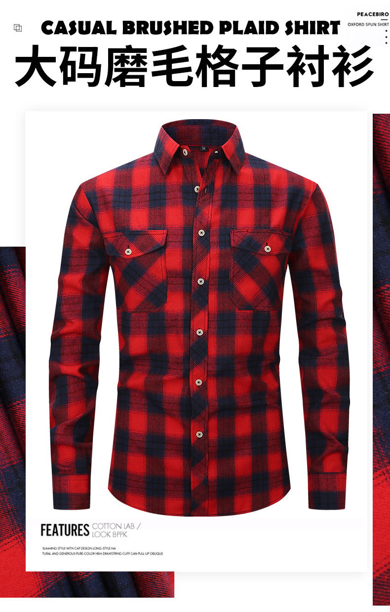 봄 여름 슬림핏 아마존 패션 기모 체크 무늬 하이 엔드 긴팔 더블 포켓 플란넬 남성 셔츠스토어 가기