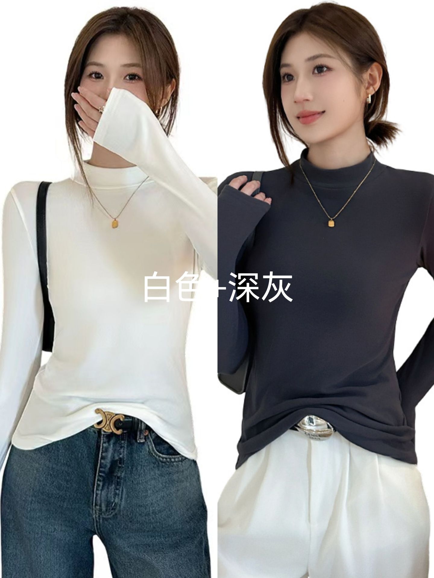 한 번에 두 개 구매【투피스 세트】신상 하프넥 솔리드 컬러 패션 베이스 셔츠 여성 가을 겨울 긴팔 상의