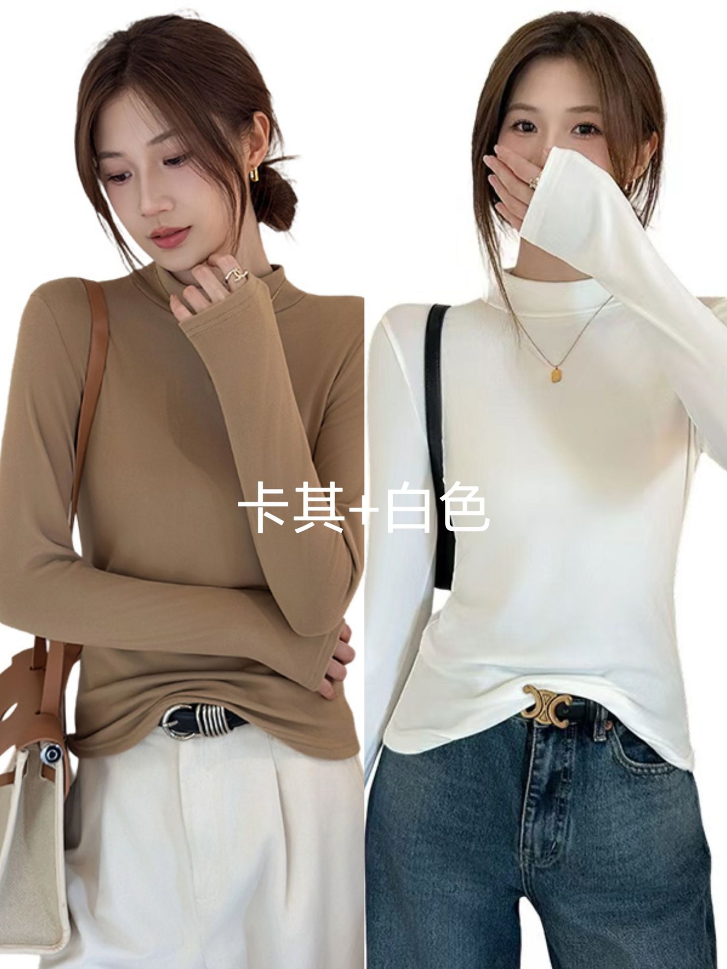 한 번에 두 개 구매【투피스 세트】신상 하프넥 솔리드 컬러 패션 베이스 셔츠 여성 가을 겨울 긴팔 상의스토어 가기