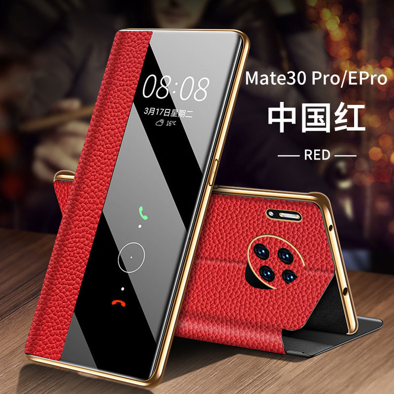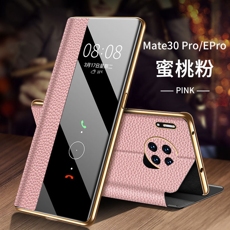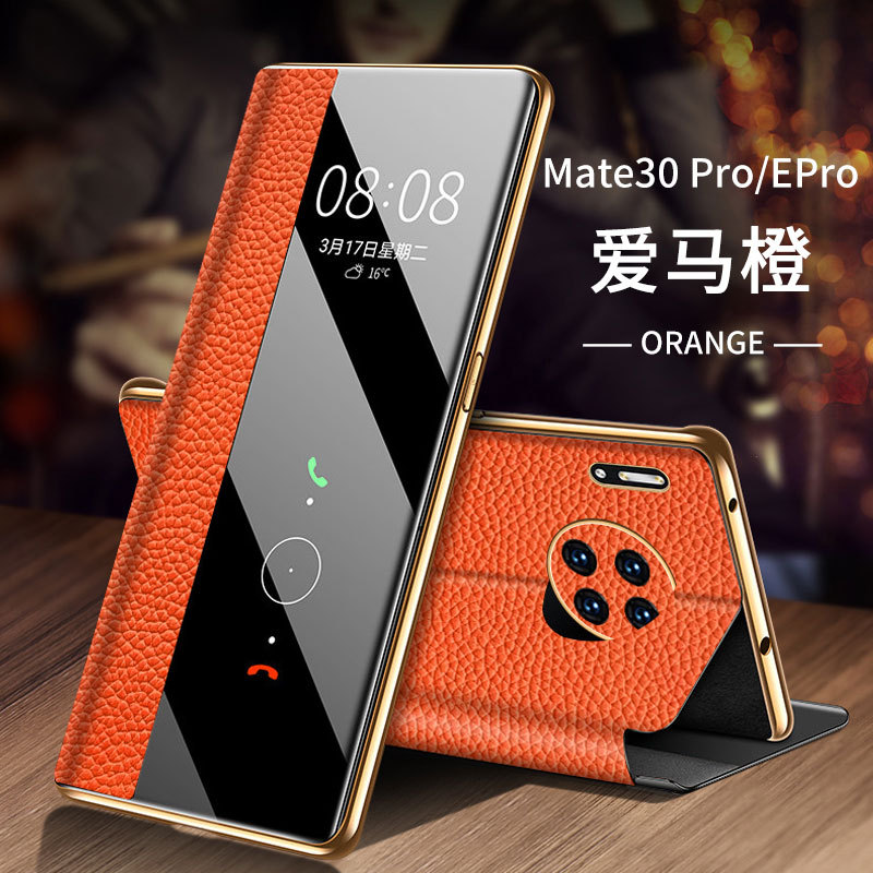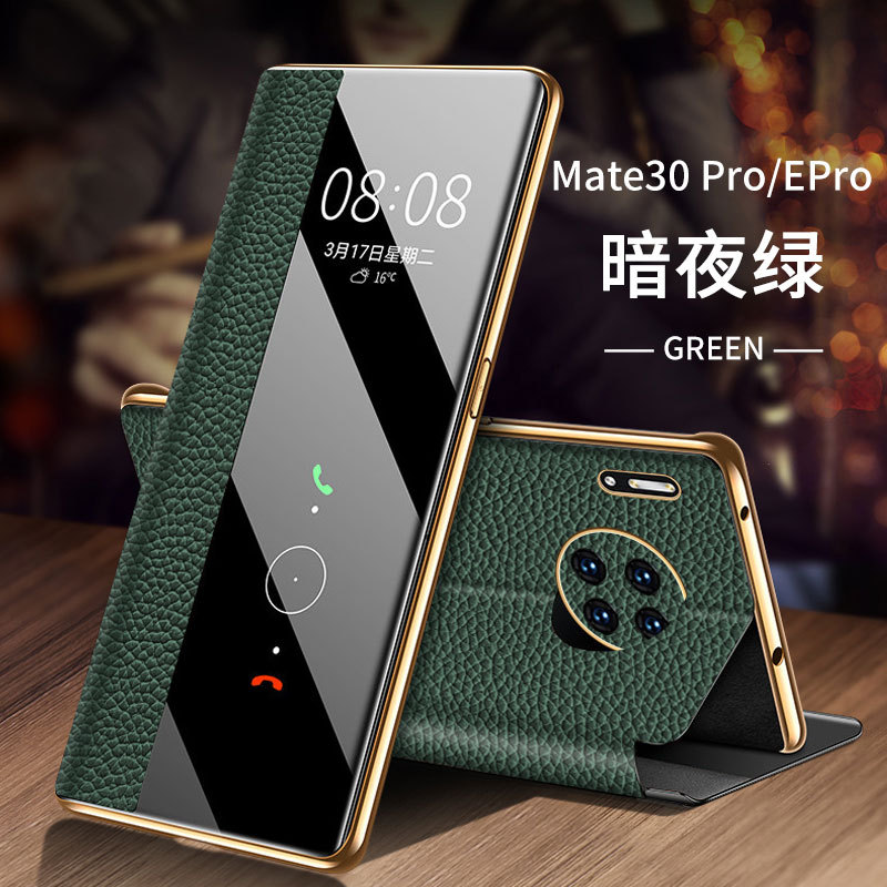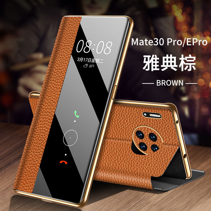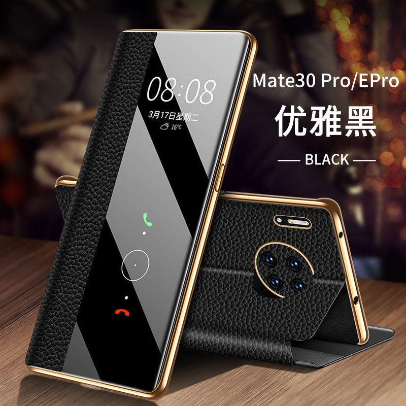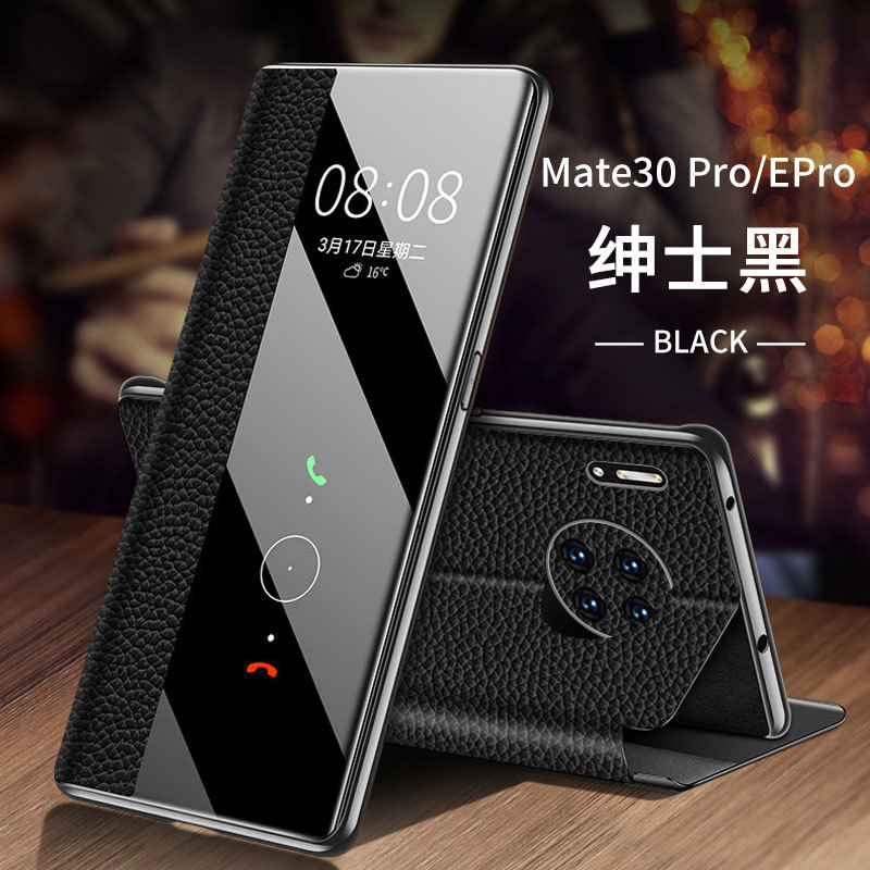 화웨이 메이트 30pro 스마트 비주얼 플립 프리 답변 브래킷 가죽 케이스 가죽 도금 블랙 파인 홀스토어 가기
