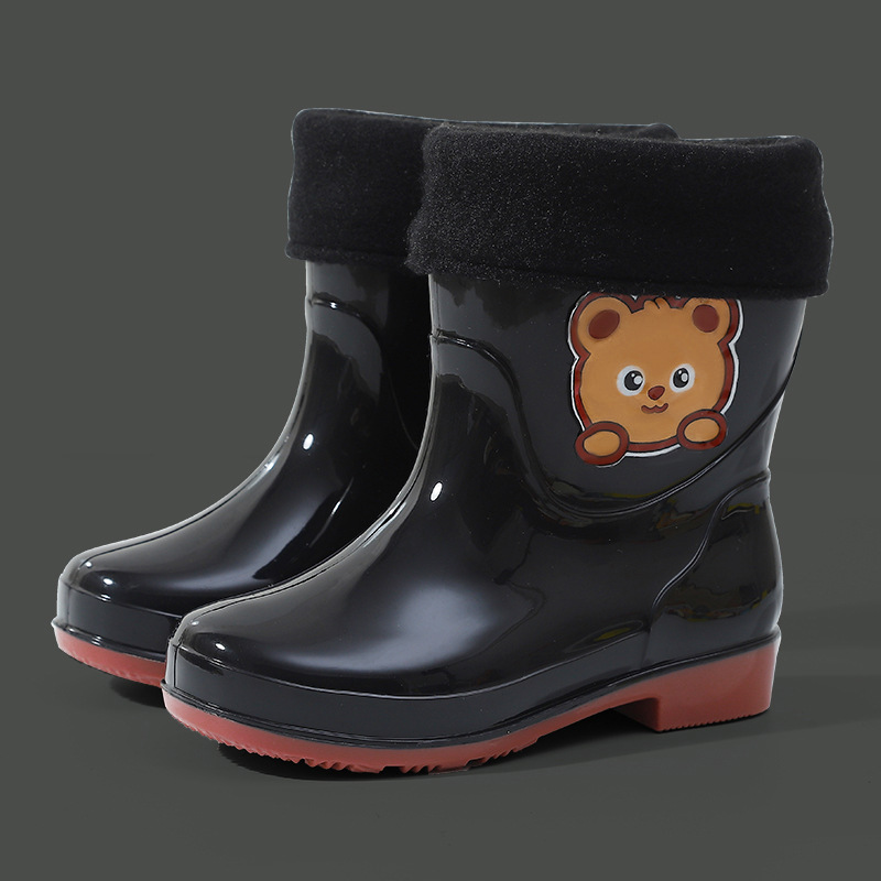 3-10 세 새로운 포 시즌 어린이 레인 부츠 소년 소녀 워터 부츠 미끄럼 방지 두꺼운 바닥 면 따뜻한 물 신발 고무 신발 겨울
