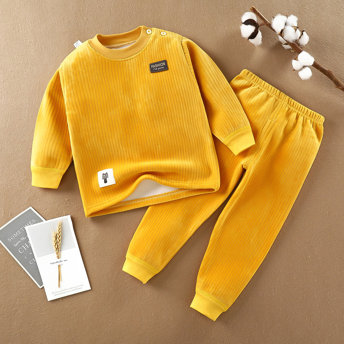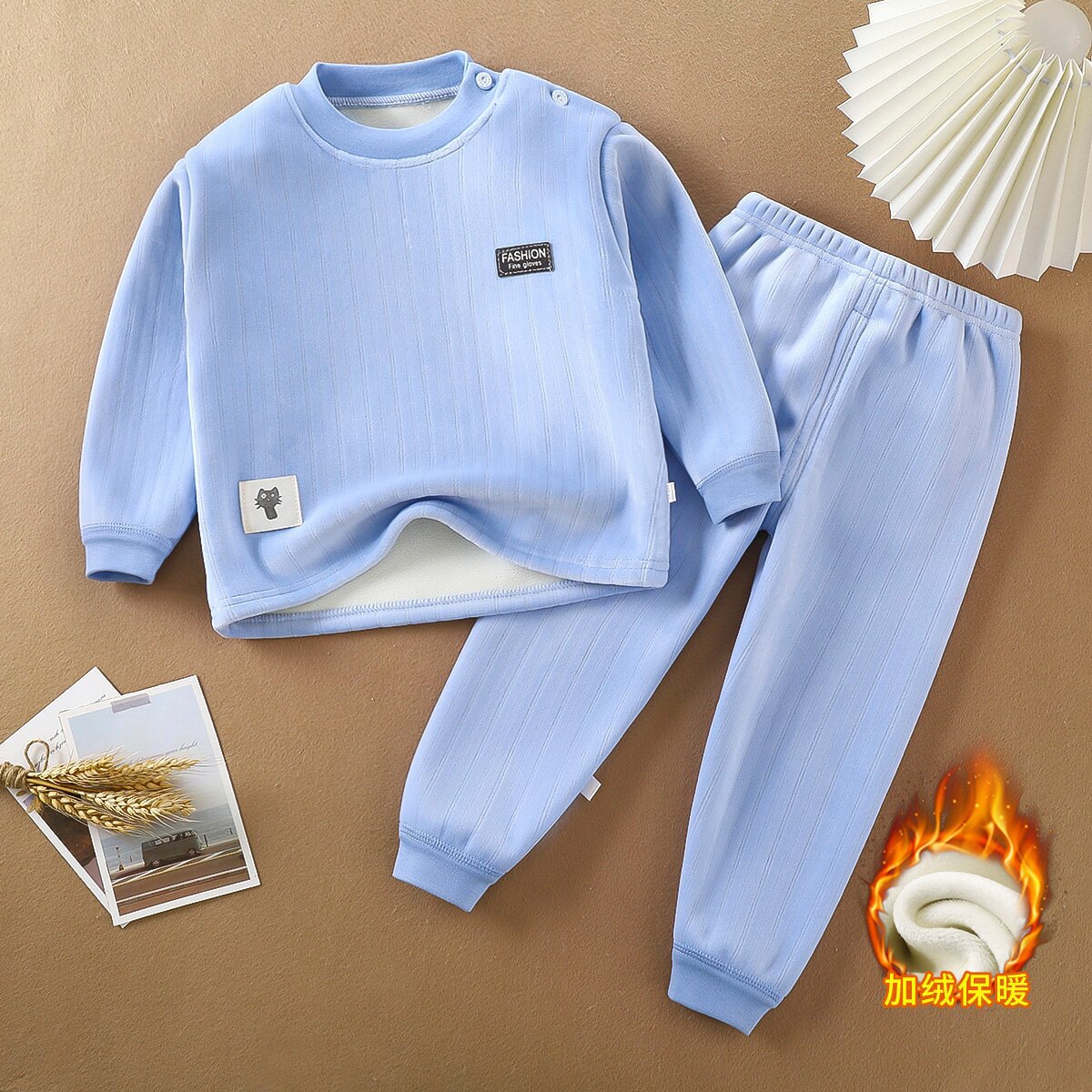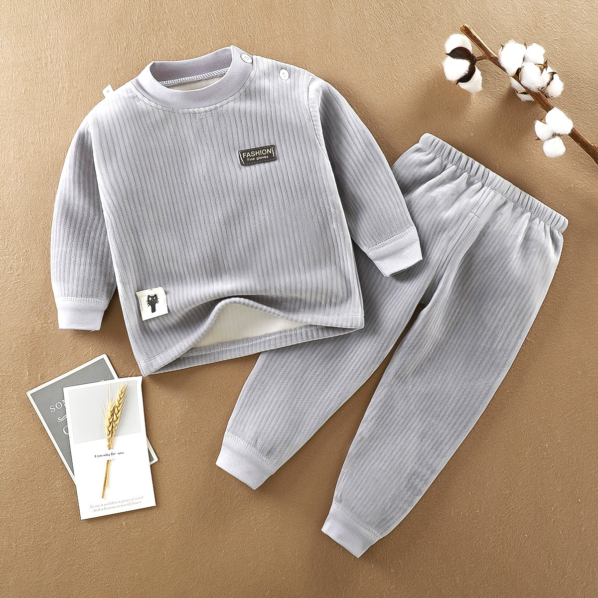 새로운 겨울 어린이 플러스 벨벳 세트 따뜻한 아기 소년 소녀 어린이 아기 세트 열 속옷 세트