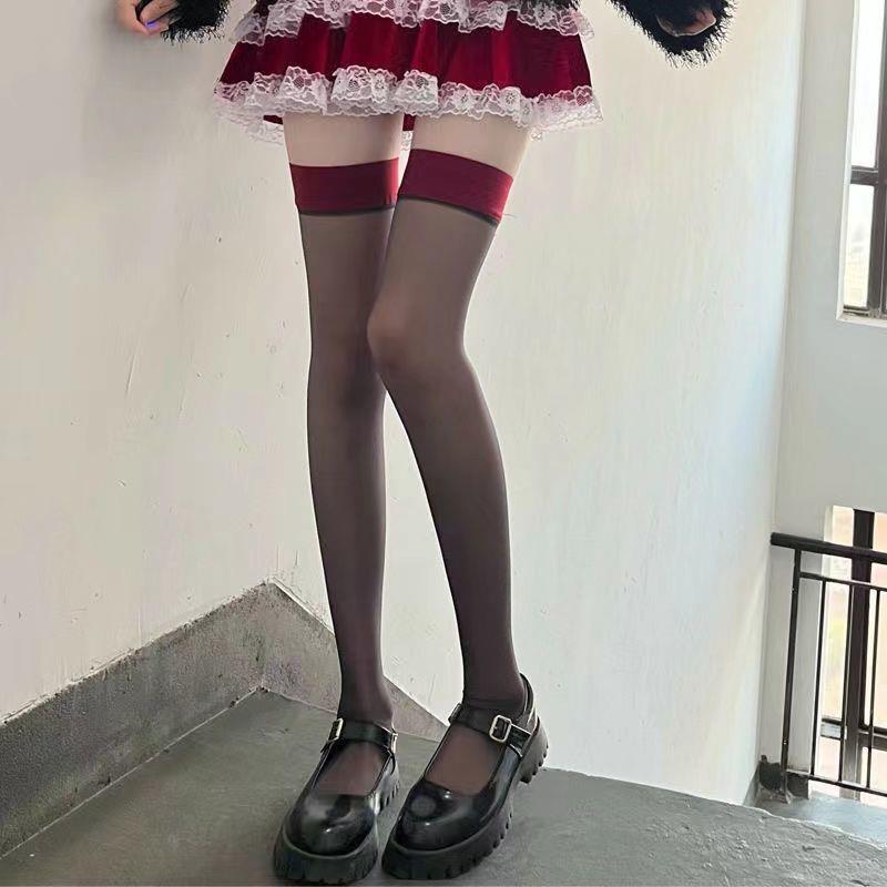 • 블랙 오버 무릎 3 쌍-(레드 에지 + 블랙 에지 + 레이스 에지)