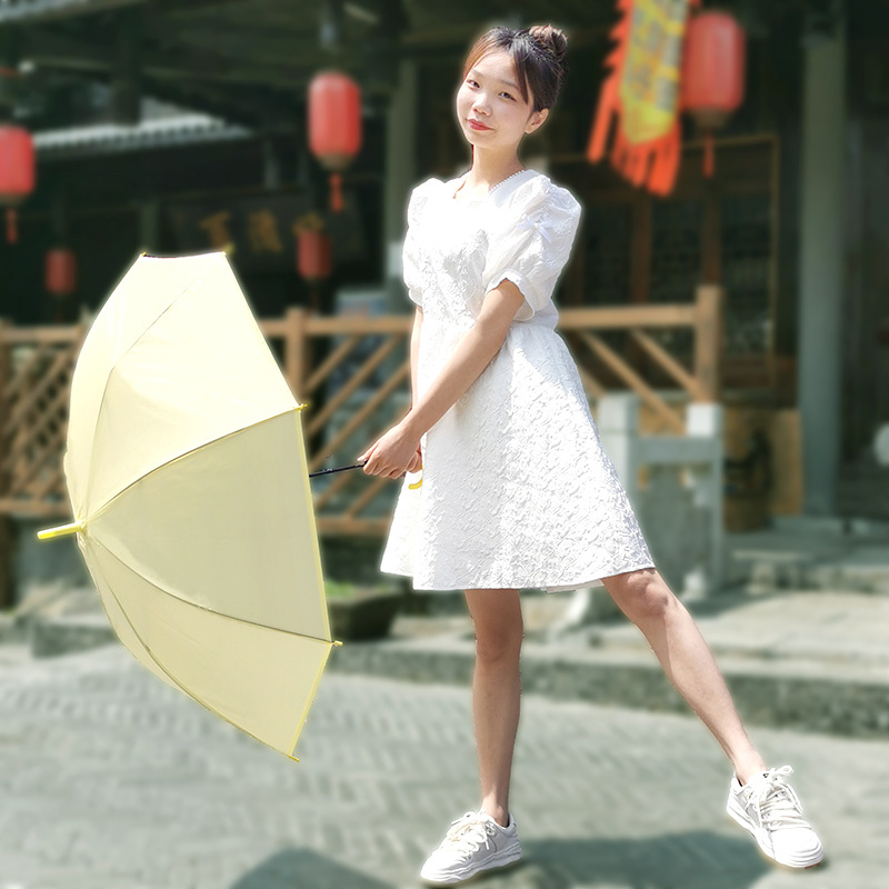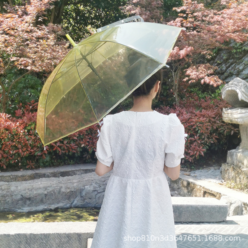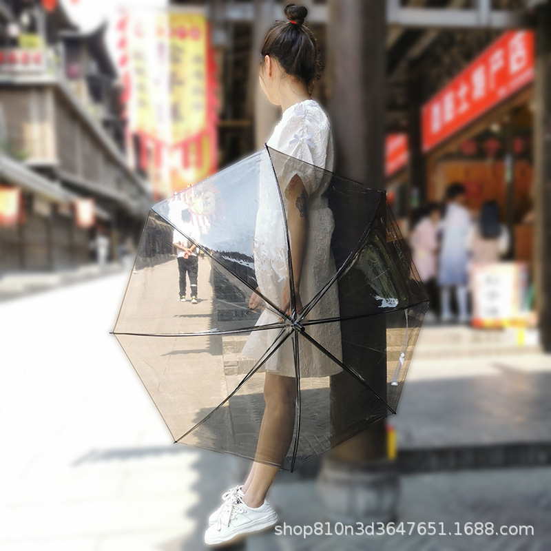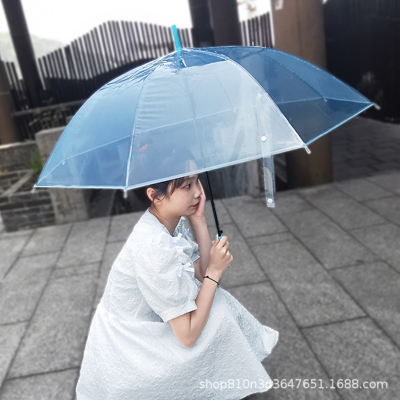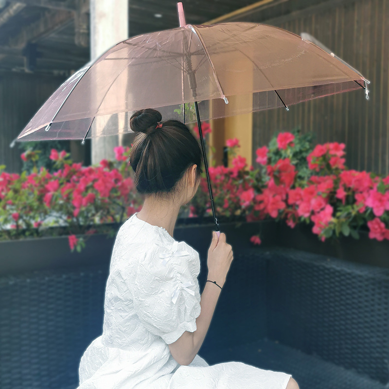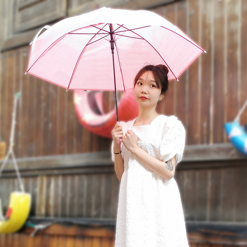 긴 손잡이 투명 우산 도매 인쇄 가능한 로고 광고 자동 써니 우산 맞춤형 스톨 투명 우산 여성의 높은 감각스토어 가기