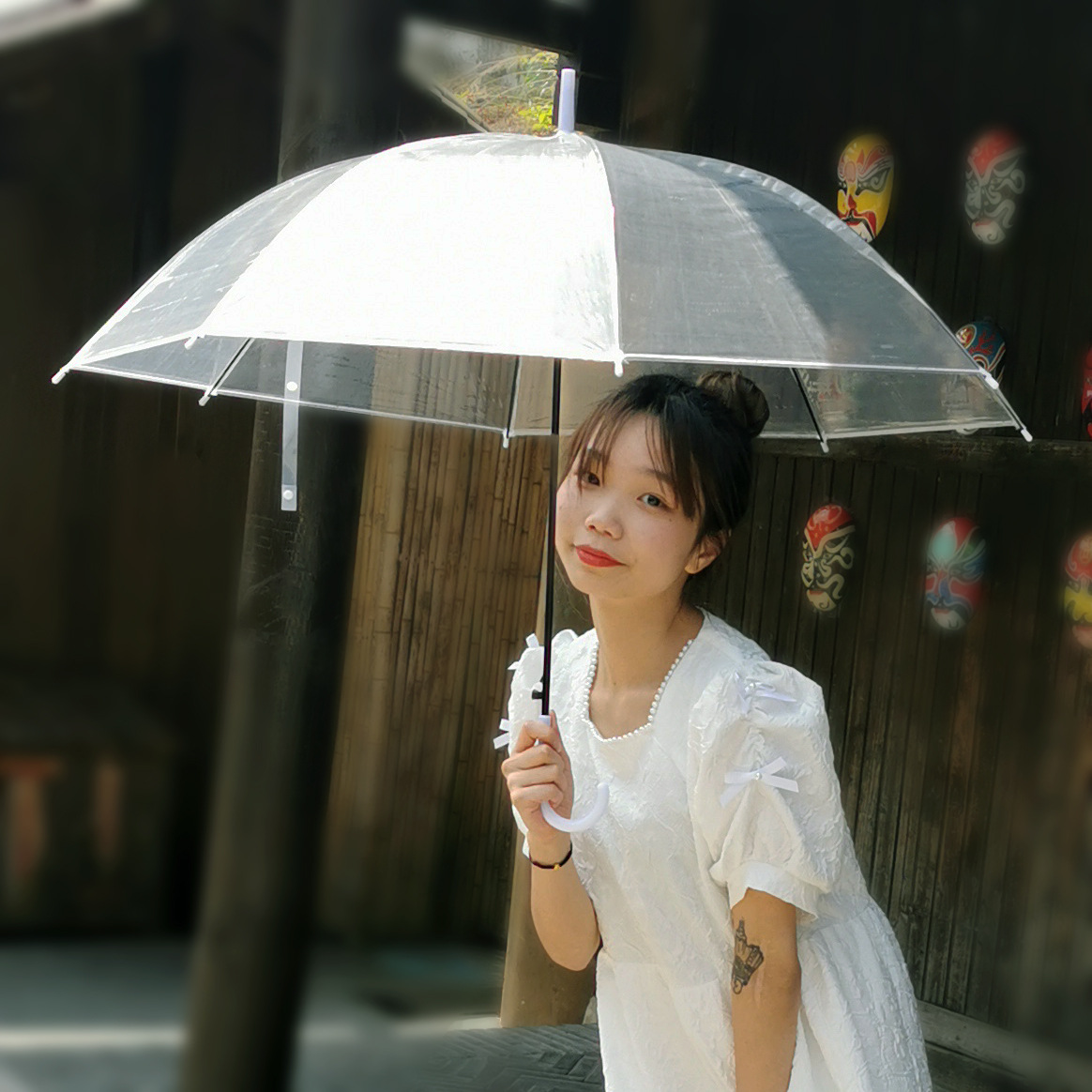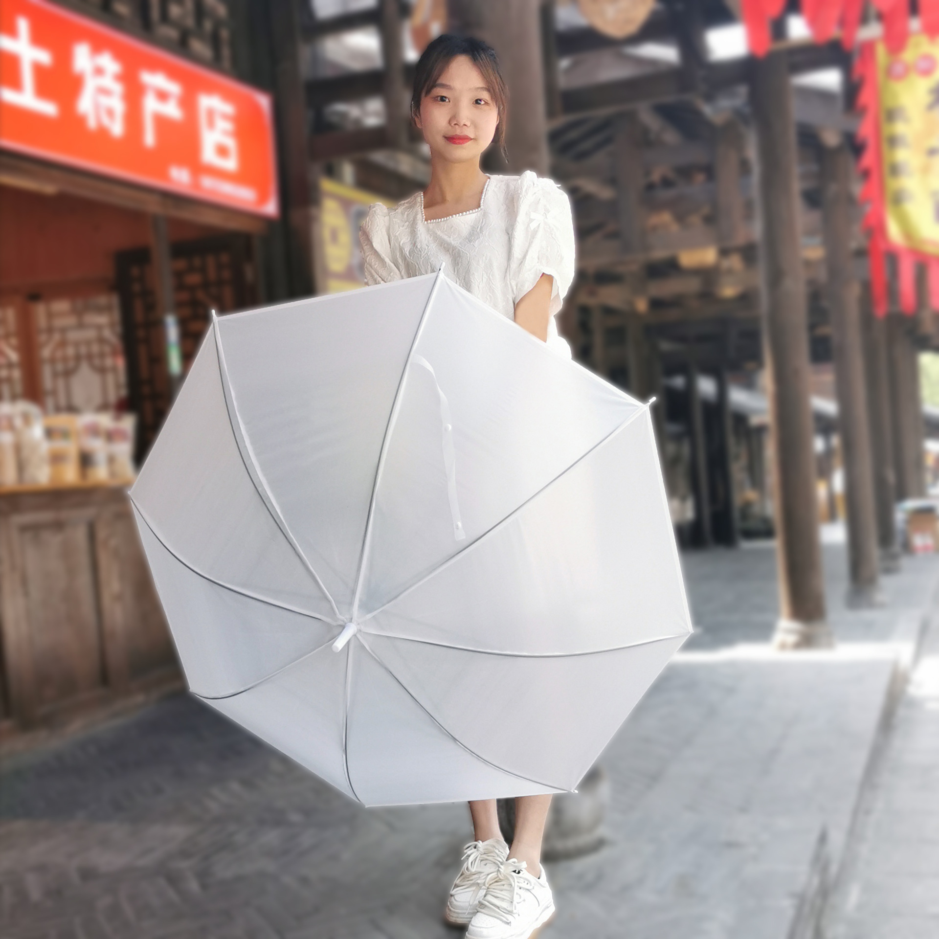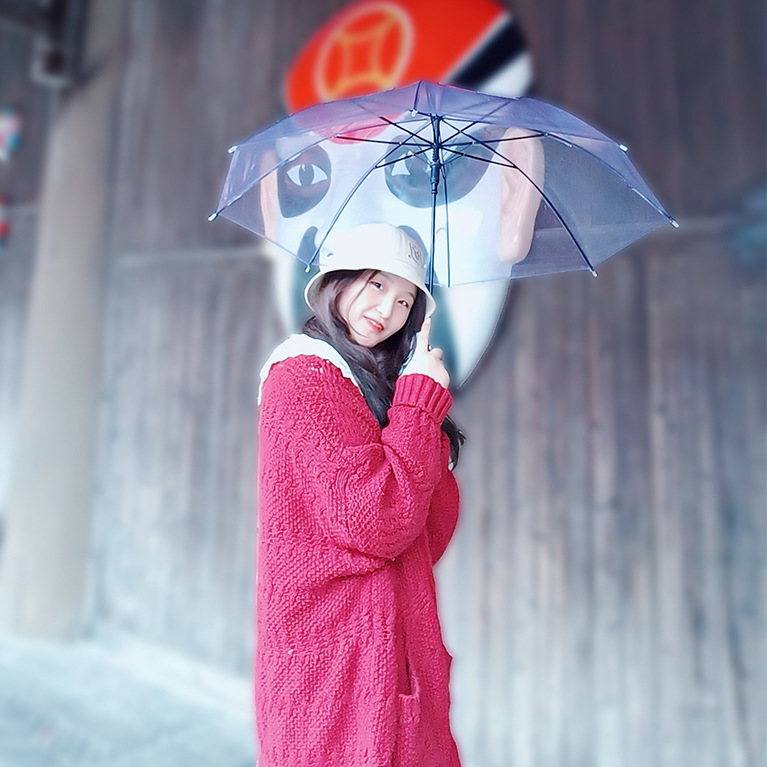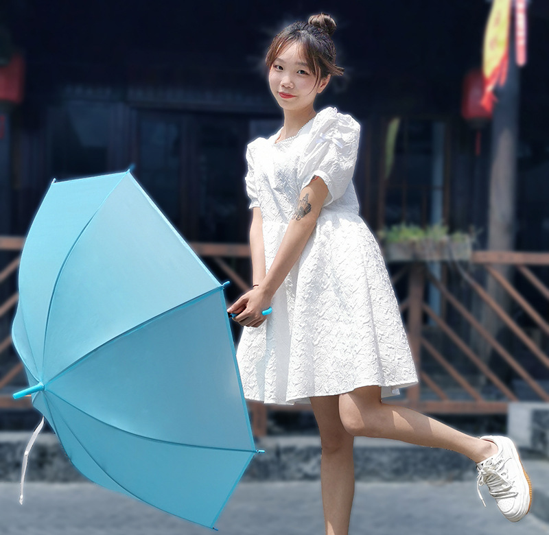 긴 손잡이 투명 우산 도매 인쇄 가능한 로고 광고 자동 써니 우산 맞춤형 스톨 투명 우산 여성의 높은 감각스토어 가기