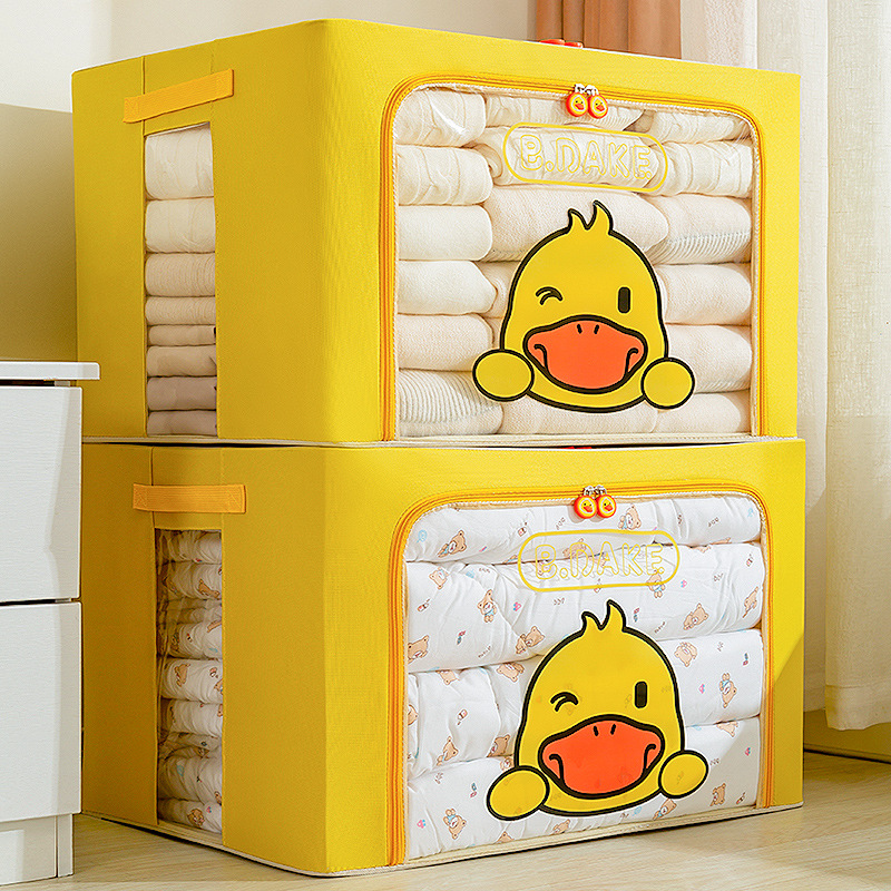 儿童小黄鸭收纳箱可折叠大容量钢架箱整理防水防潮衣服被子收纳袋