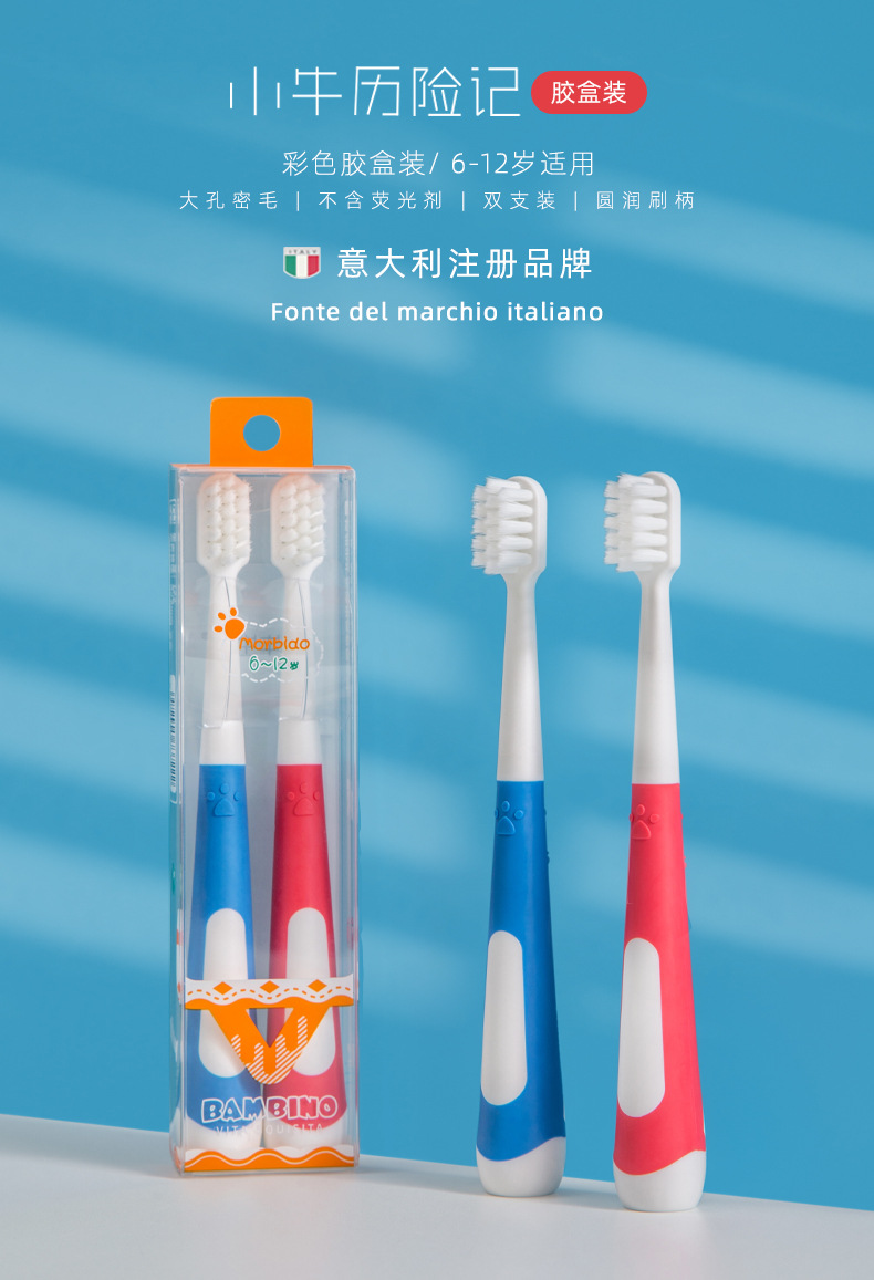송아지 모험 칫솔 어린이 칫솔 부드러운 머리 도매 2 팩 6-12 세 서있는 슈퍼마켓스토어 가기