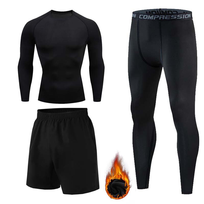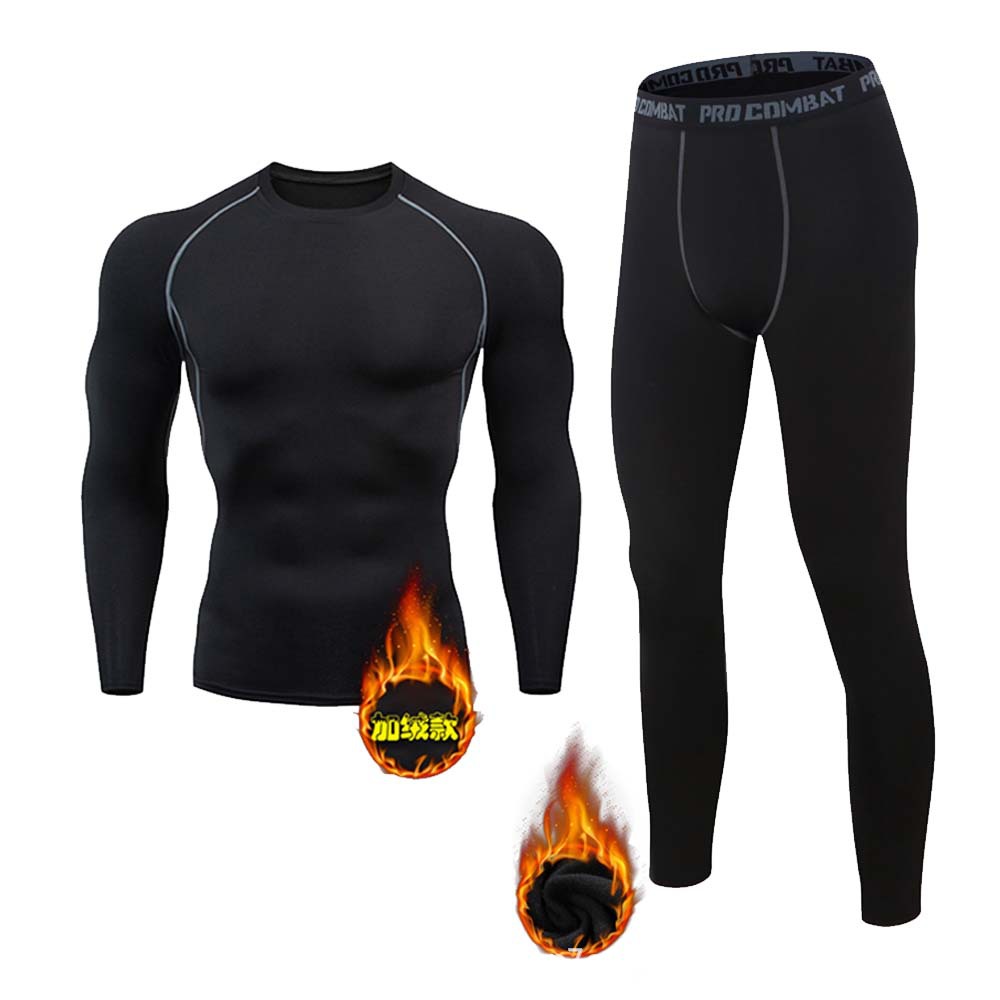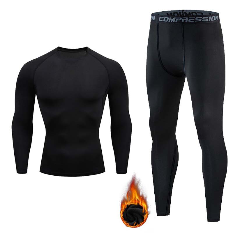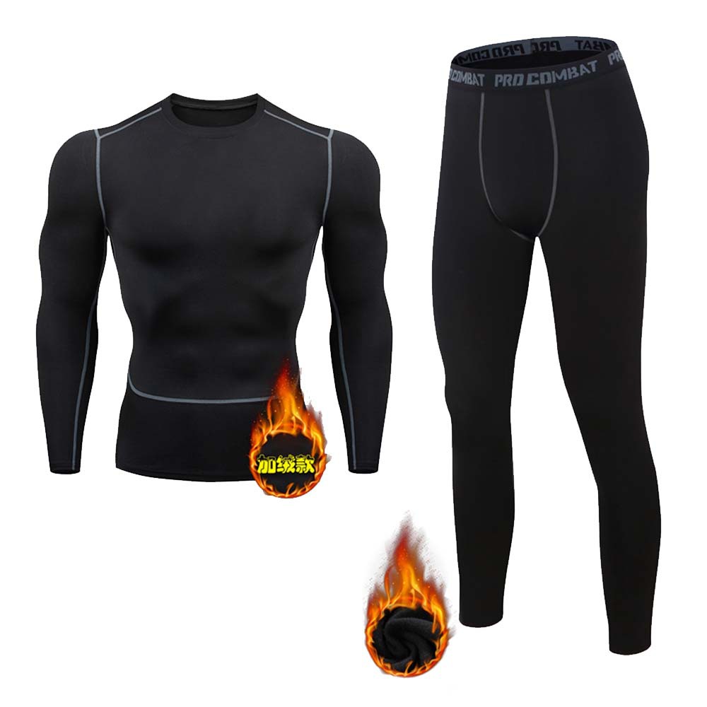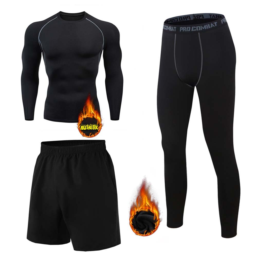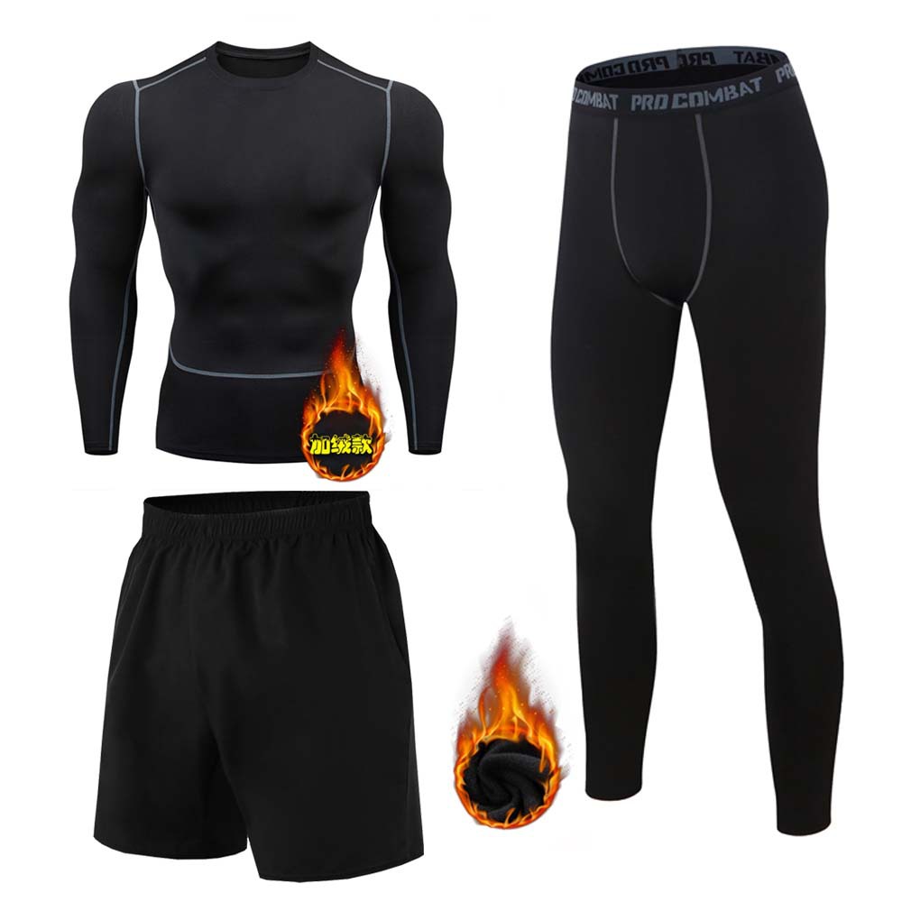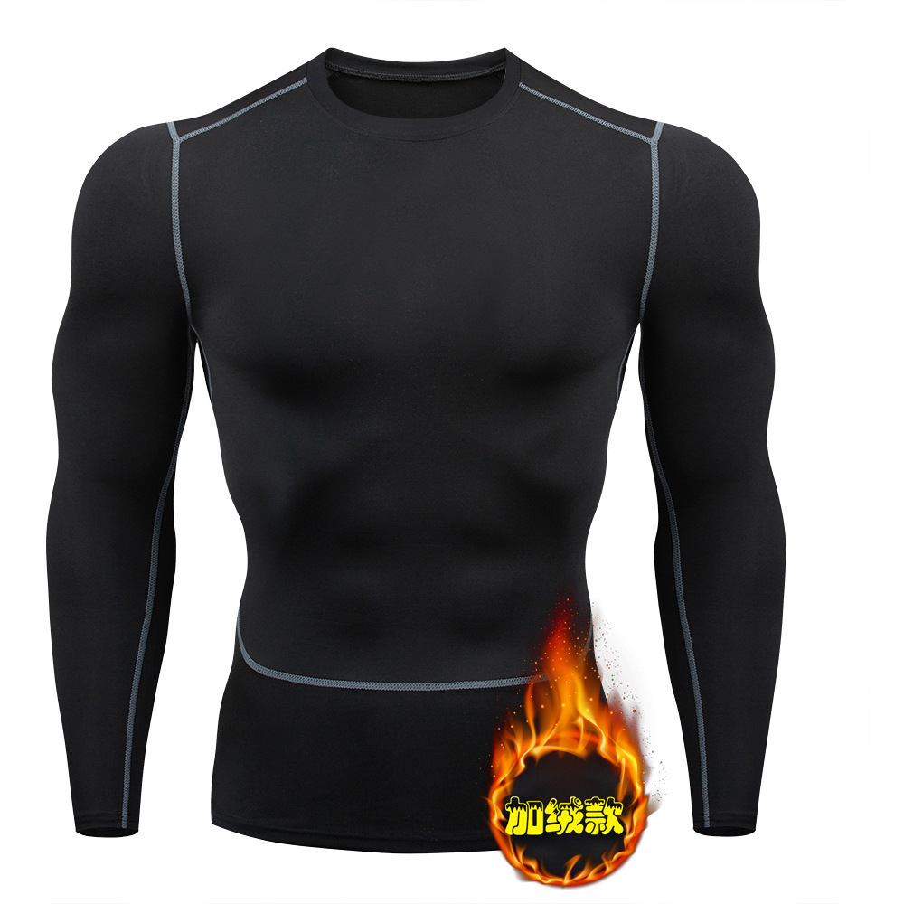 가을과 겨울 남자의 꽉 따뜻한 스포츠 훈련 의류 피트니스 의류 남자의 기모 티셔츠 기지 높은 탄성 스포츠 세트