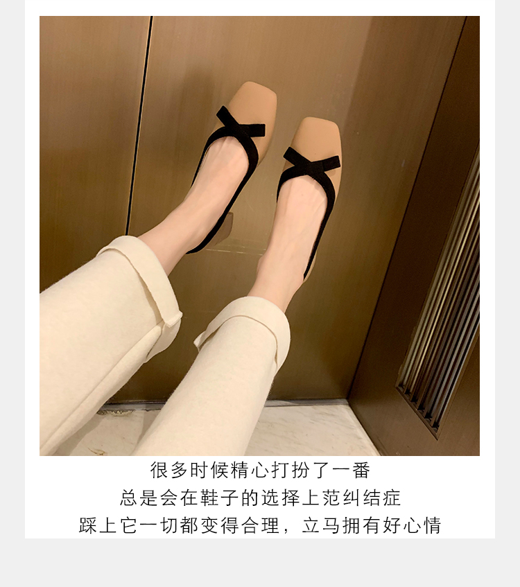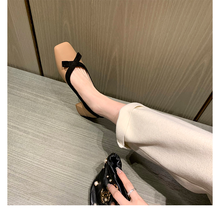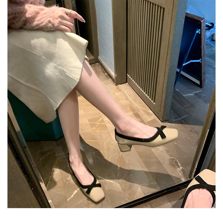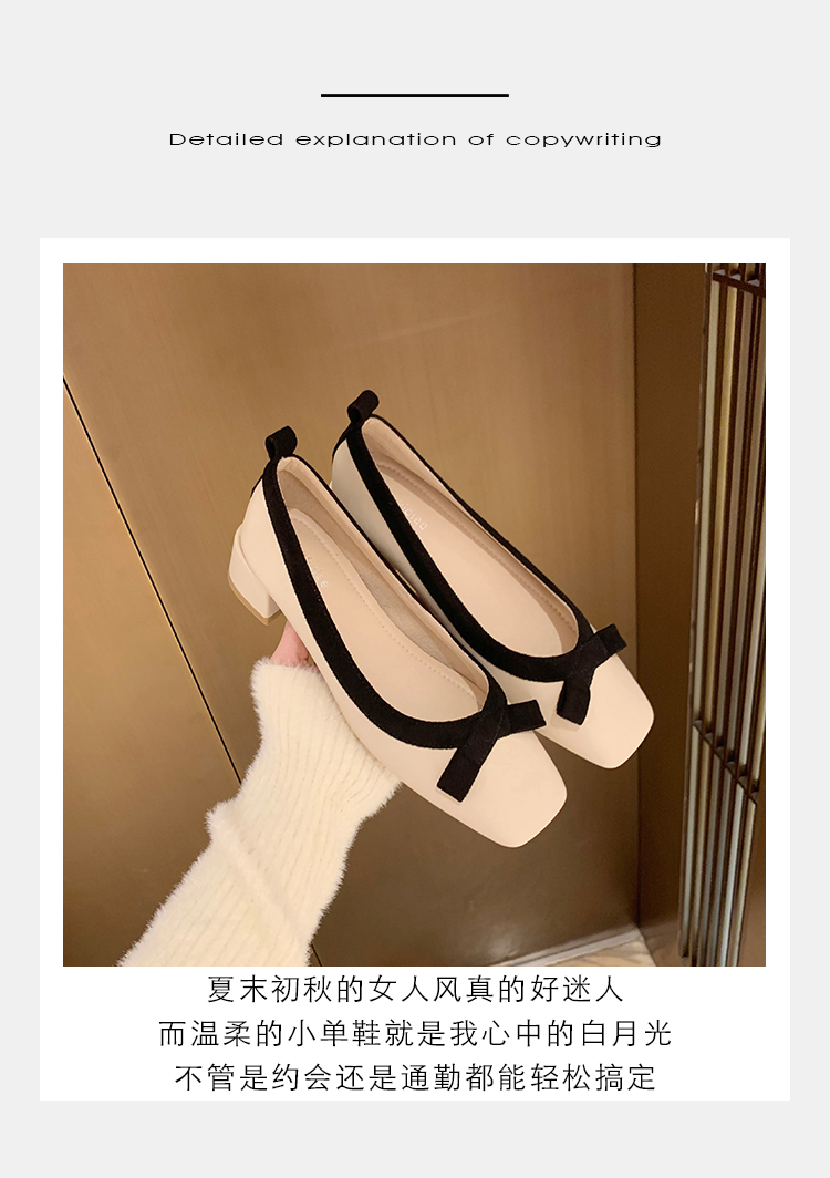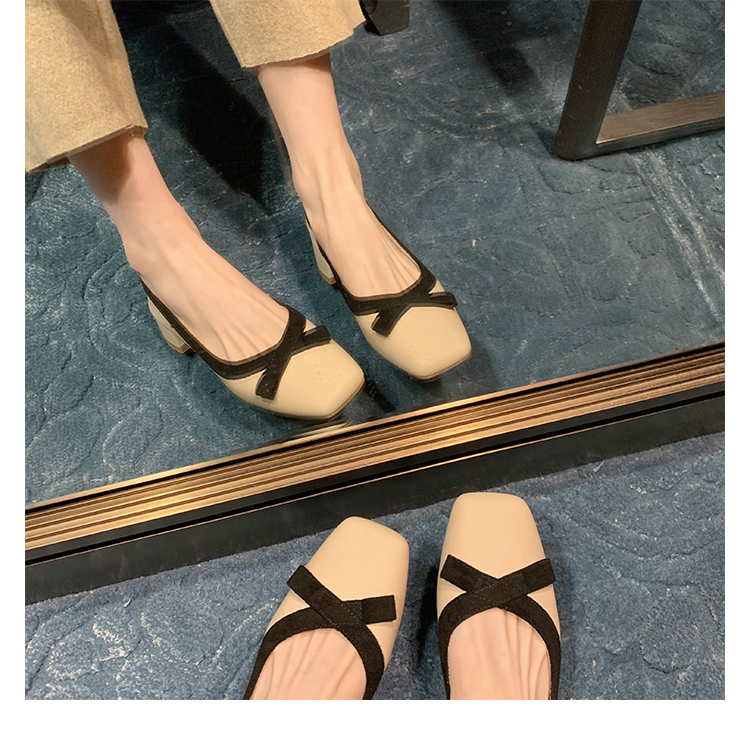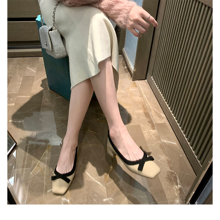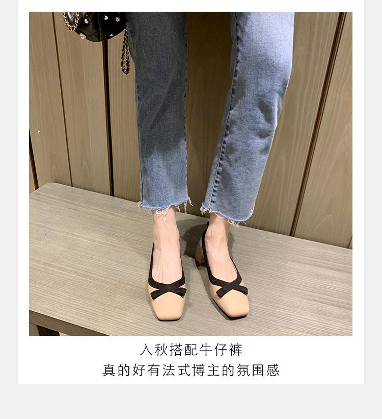 여성용 프렌치 스타일 이브닝 스타일 리본 미드 하이힐, 스퀘어 토, 얕은 앞코, 두꺼운 굽, 여름과 가을에 우아하고 편안하며 다용도로 활용 가능