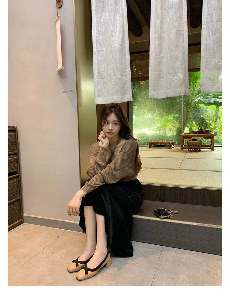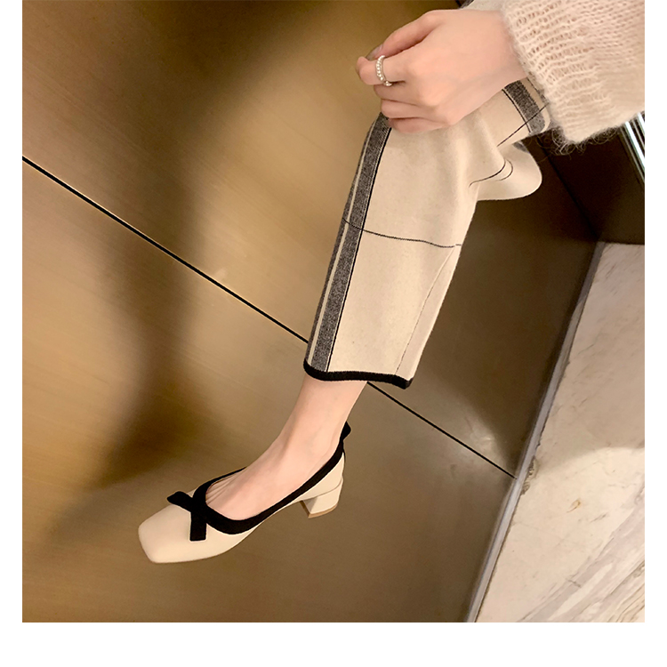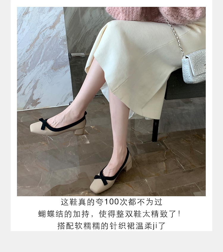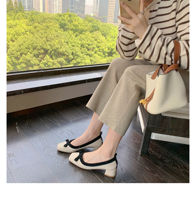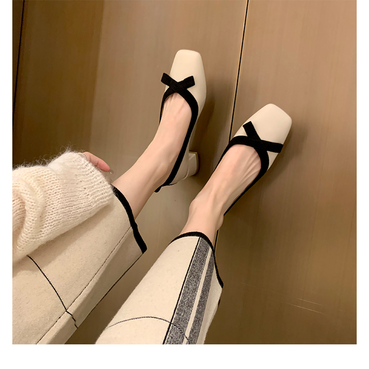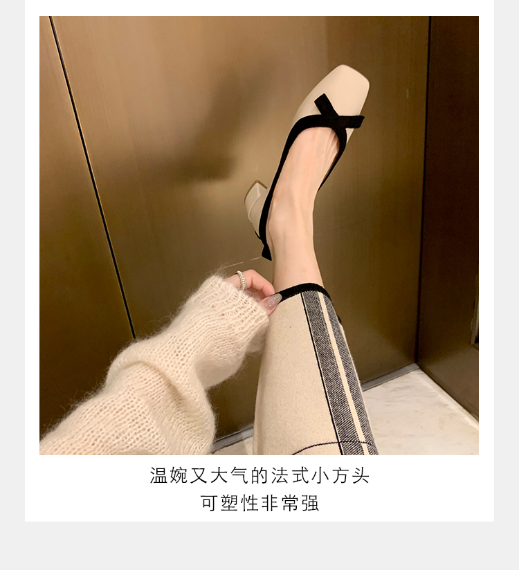 여성용 프렌치 스타일 이브닝 스타일 리본 미드 하이힐, 스퀘어 토, 얕은 앞코, 두꺼운 굽, 여름과 가을에 우아하고 편안하며 다용도로 활용 가능