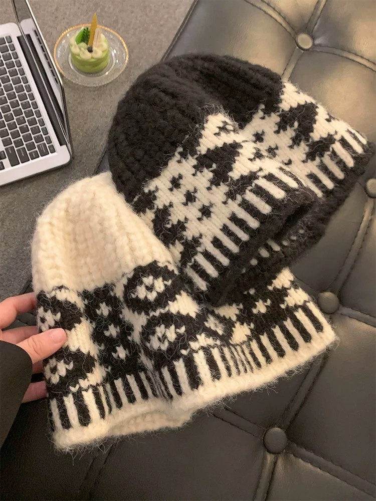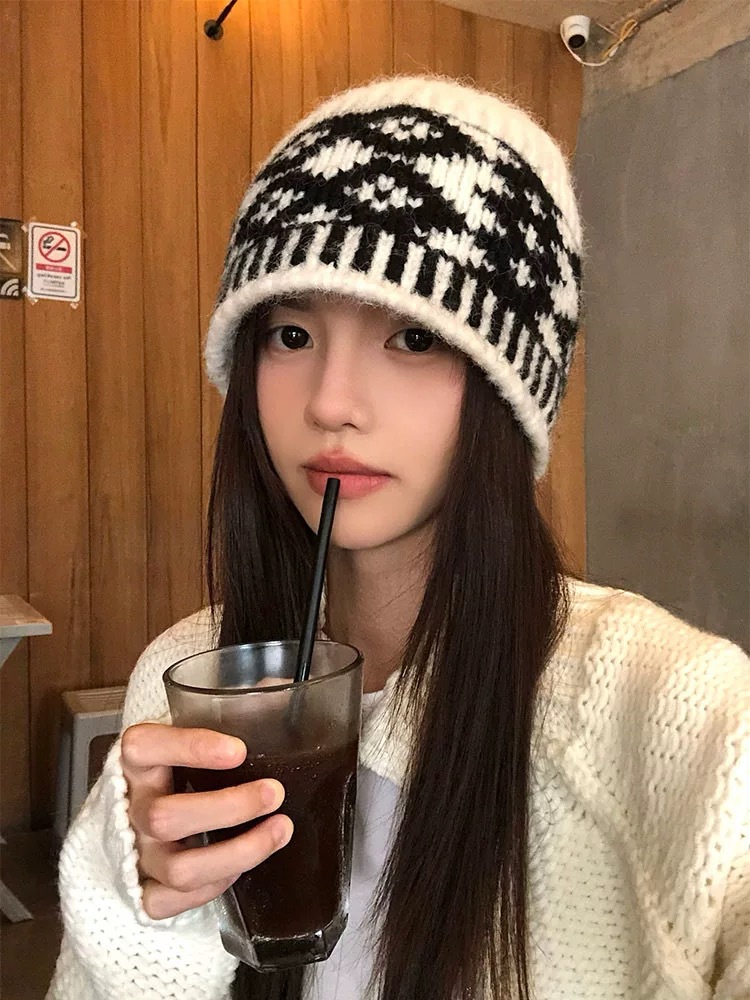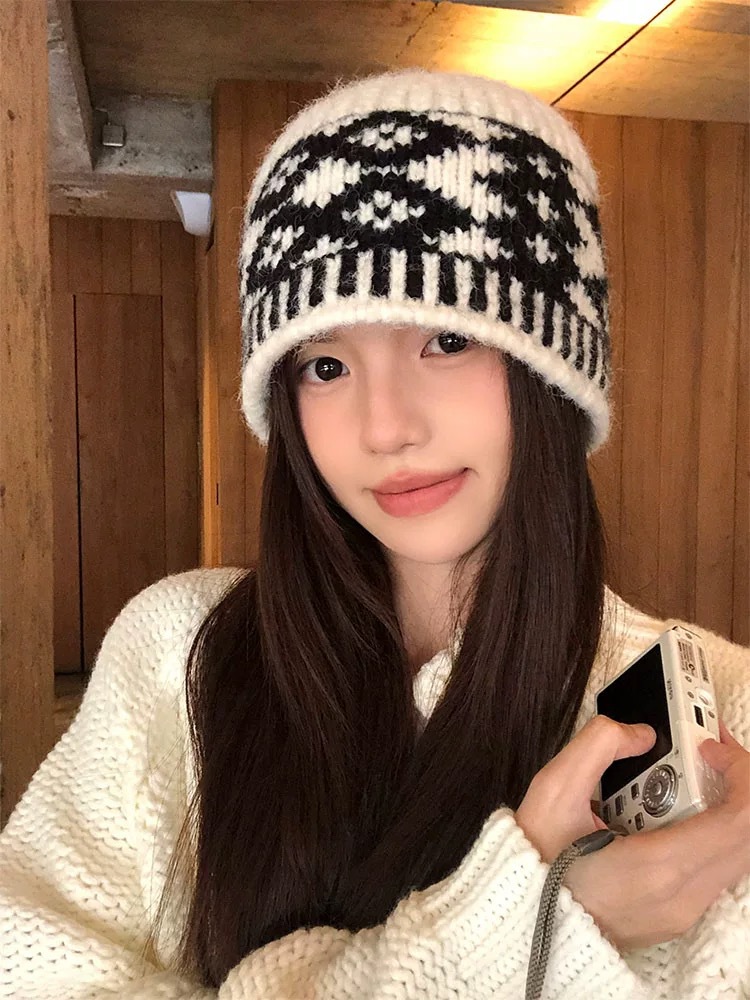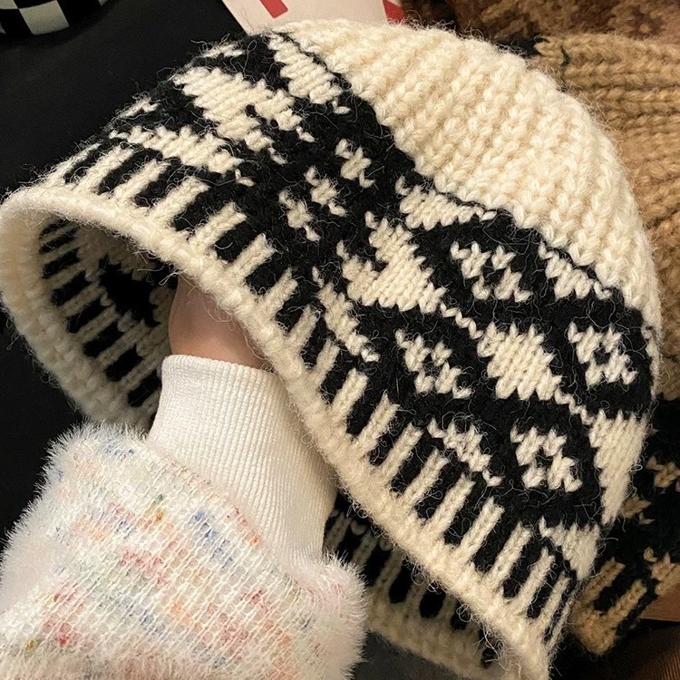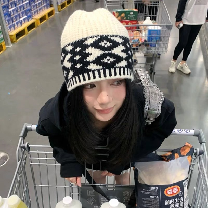 韩系复古菱形保暖毛线帽女秋冬户外防寒帽子登山针织包头帽潮厂家스토어 가기