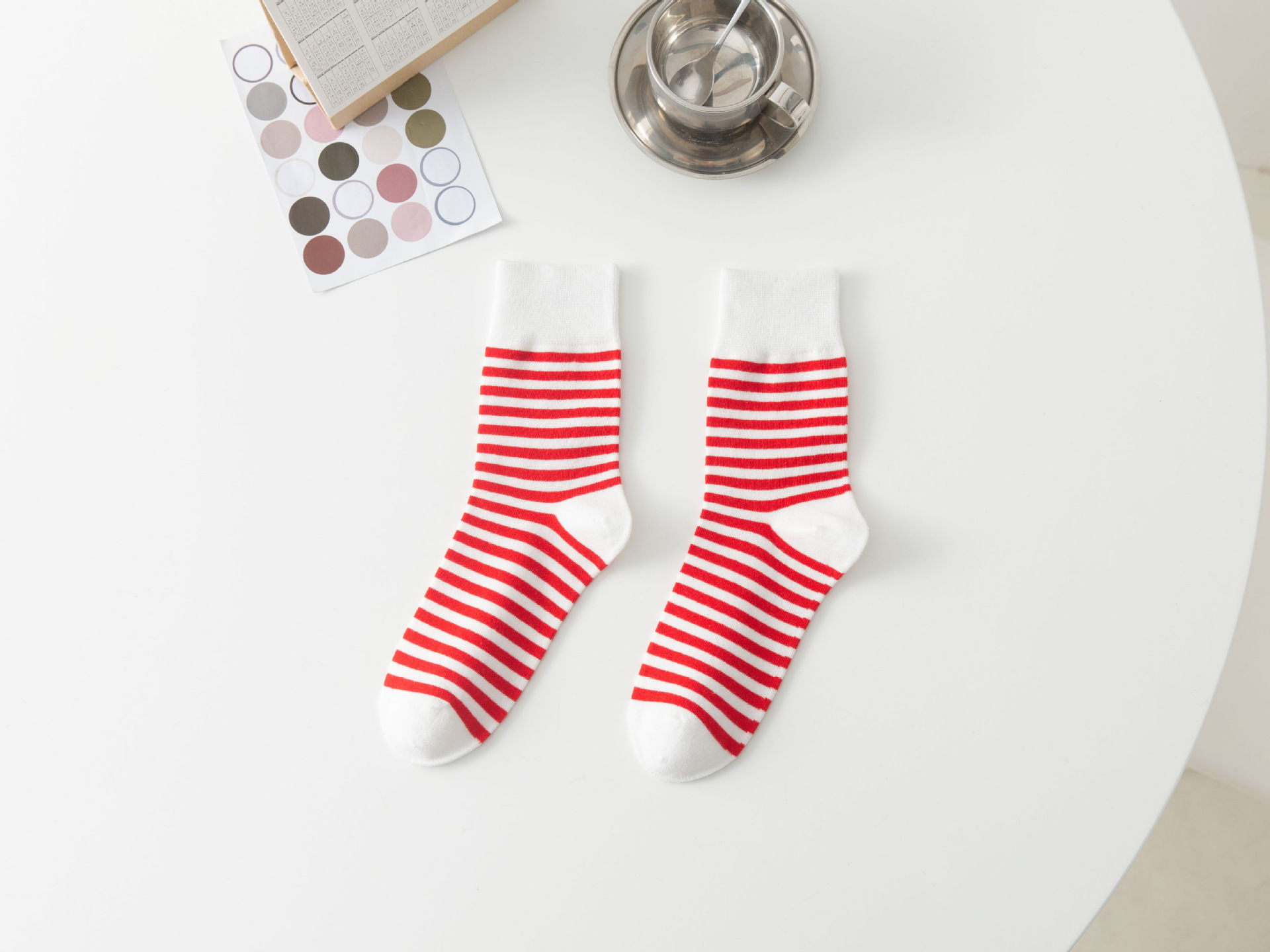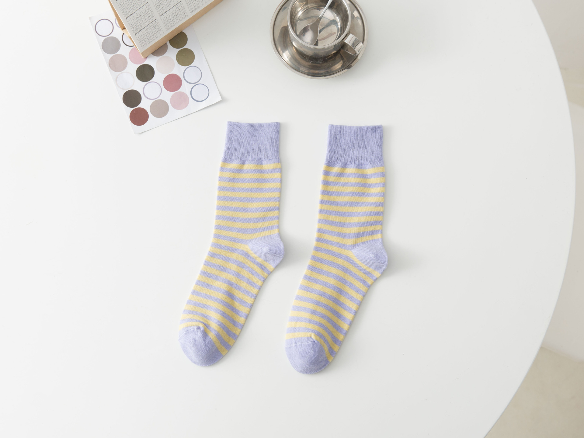 봄과 가을 줄무늬 양말 아동 최신 유행 브랜드 중간 길이 양말 캔디 컬러 스택 양말 학생 면 스타킹스토어 가기