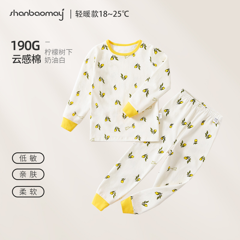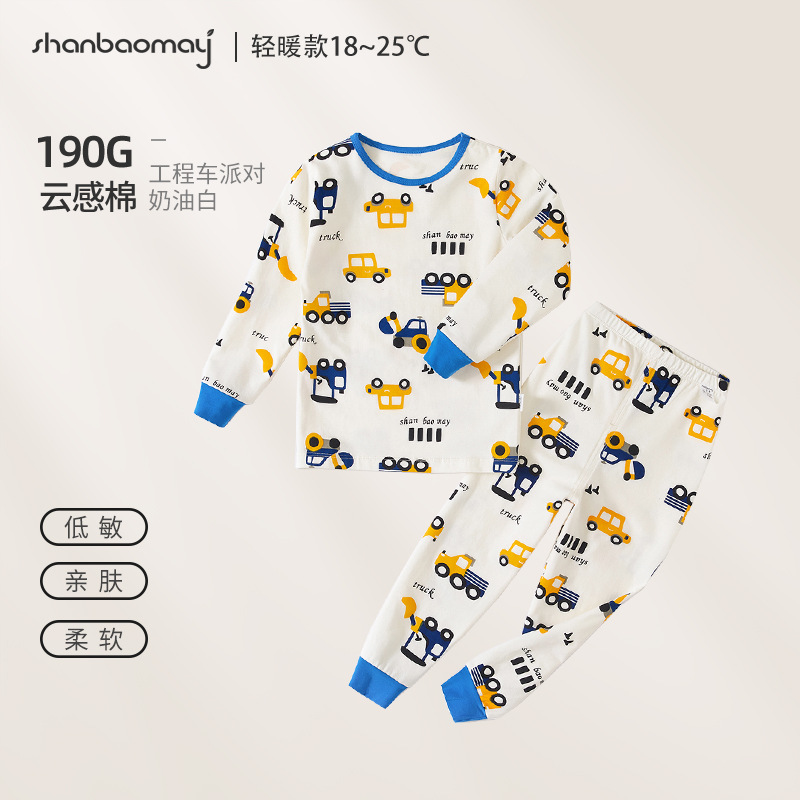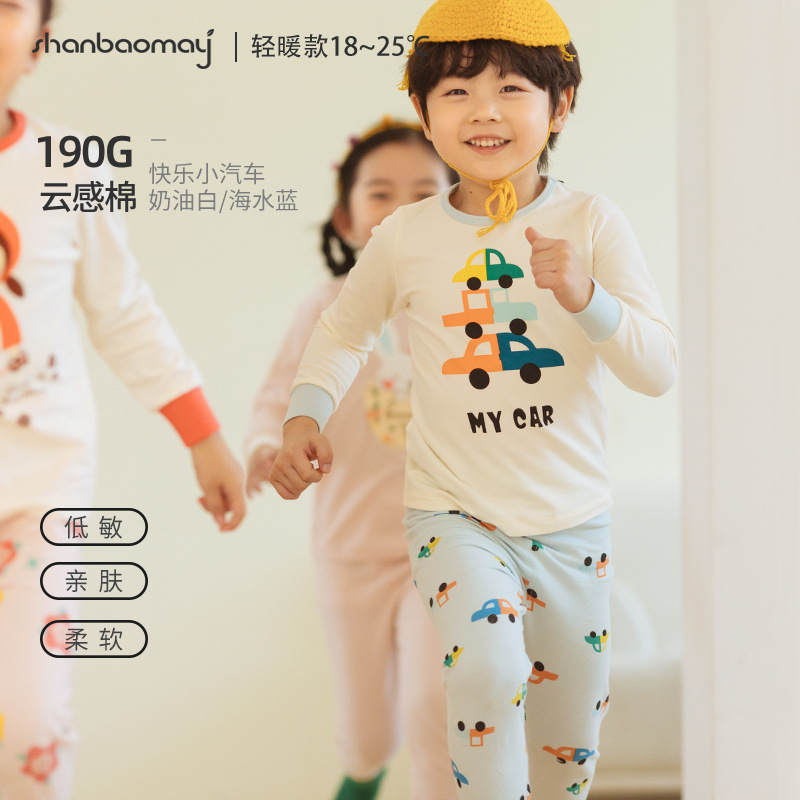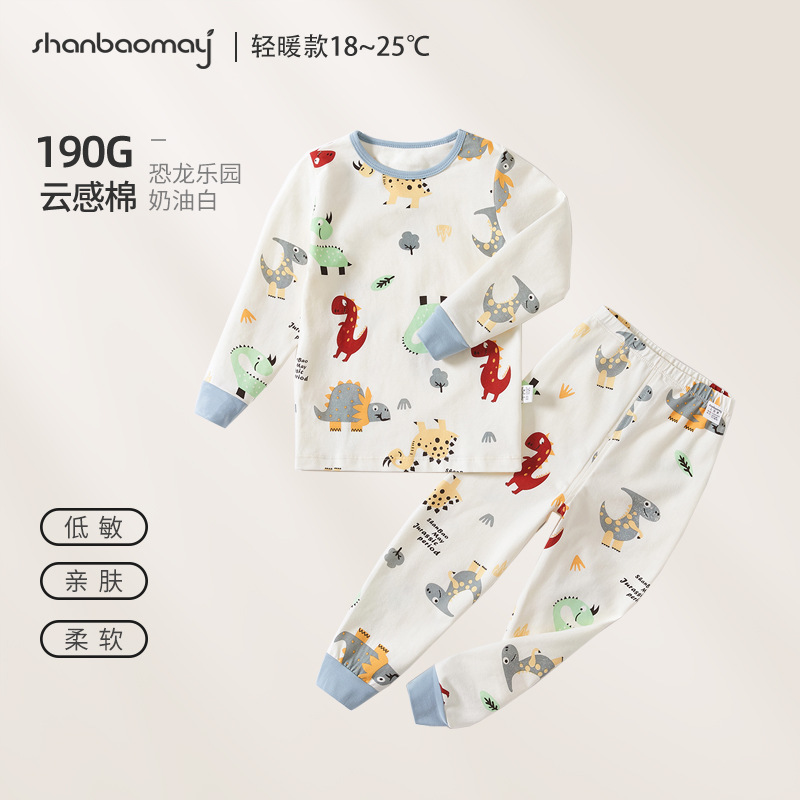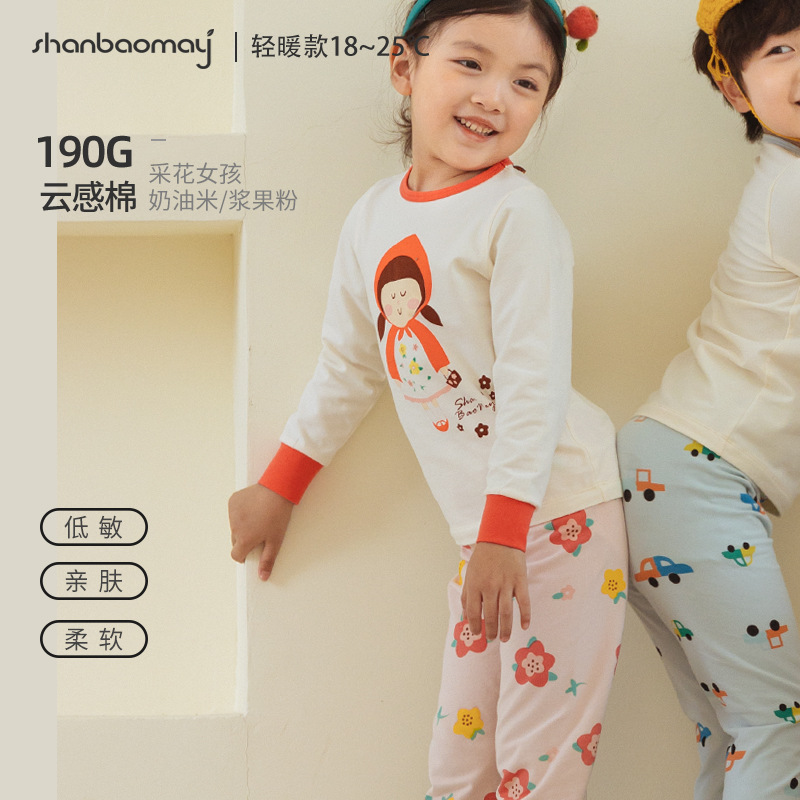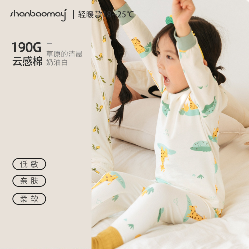 상 바오 마이 가을 새로운 어린이 속옷 긴팔 세트 소년 소녀 아기의 가을 옷과 긴 존스 세트 부드러운 구름 느낌의 면스토어 가기
