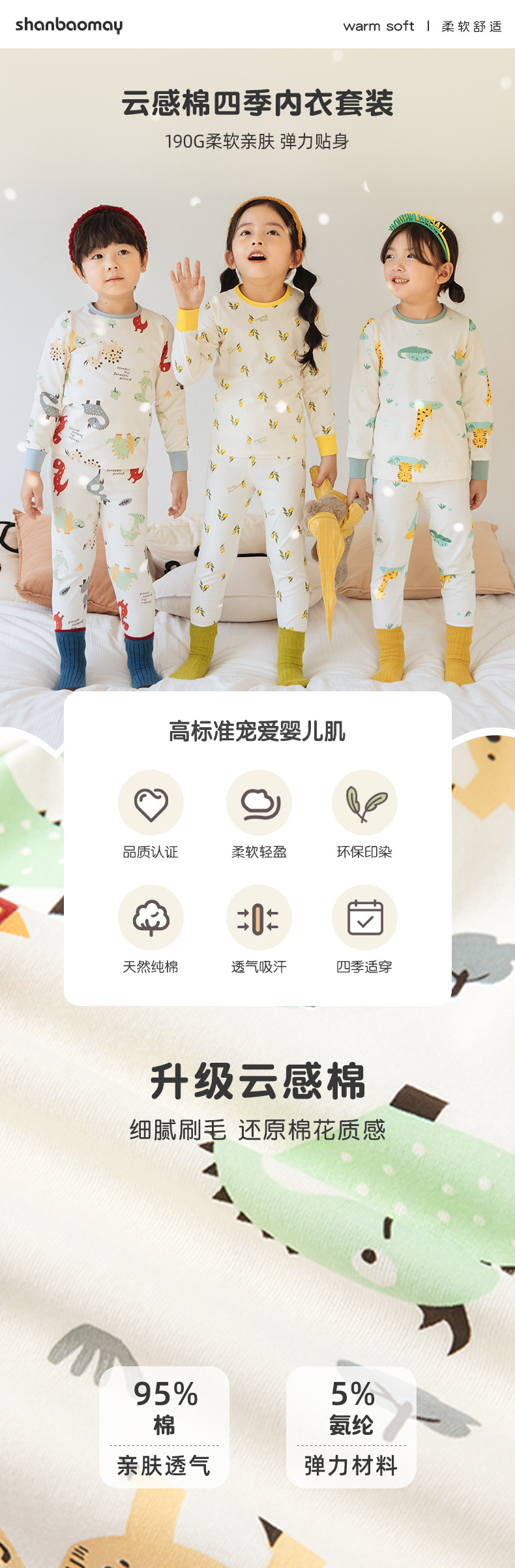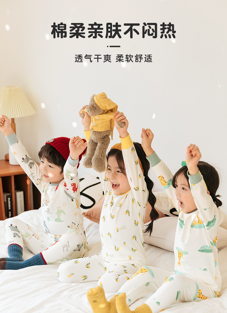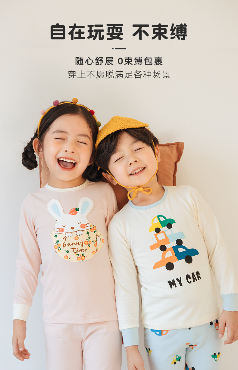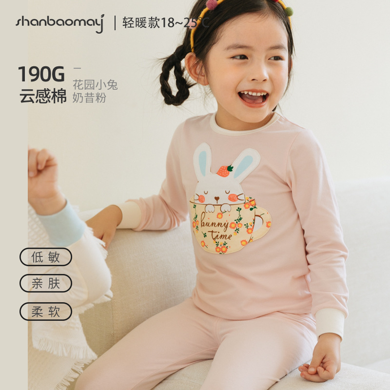 상 바오 마이 가을 새로운 어린이 속옷 긴팔 세트 소년 소녀 아기의 가을 옷과 긴 존스 세트 부드러운 구름 느낌의 면스토어 가기
