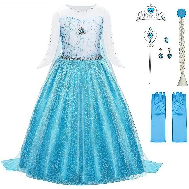 라이트 그린 긴팔 망토 냉동 스커트 어린이 엘사 공주 원피스 스팽글 소녀 cos 원피스 원피스
