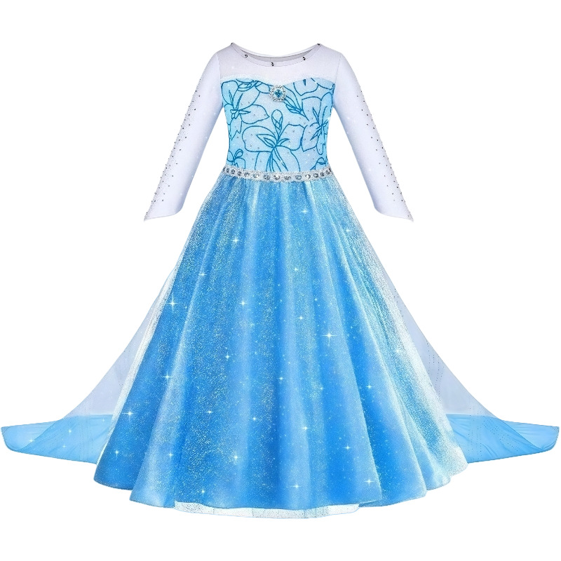 라이트 그린 긴팔 망토 냉동 스커트 어린이 엘사 공주 원피스 스팽글 소녀 cos 원피스 원피스스토어 가기