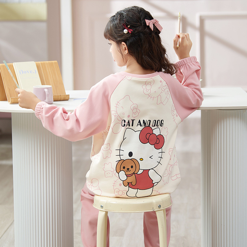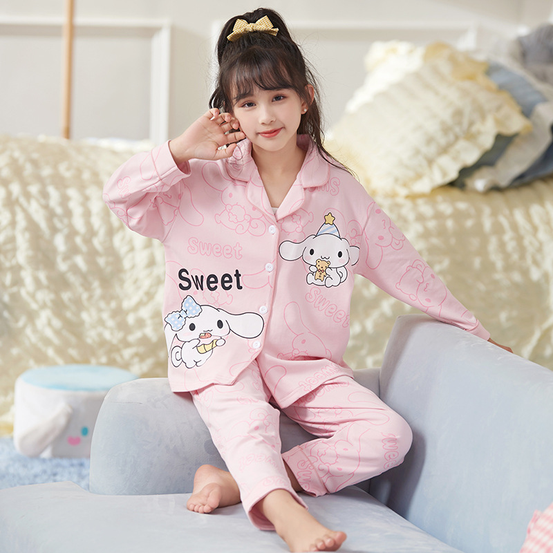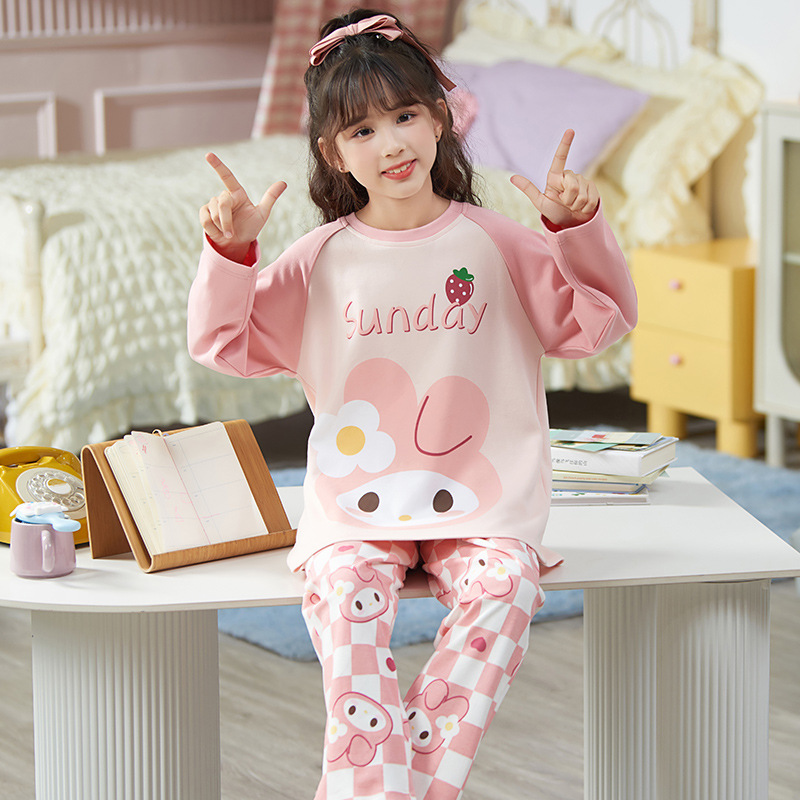 어린이 잠옷 소녀 봄과 가을 면 긴 소매 얇은 세트 소녀 공주 세련된 큰 어린이 가정 옷 새로운 스타일스토어 가기