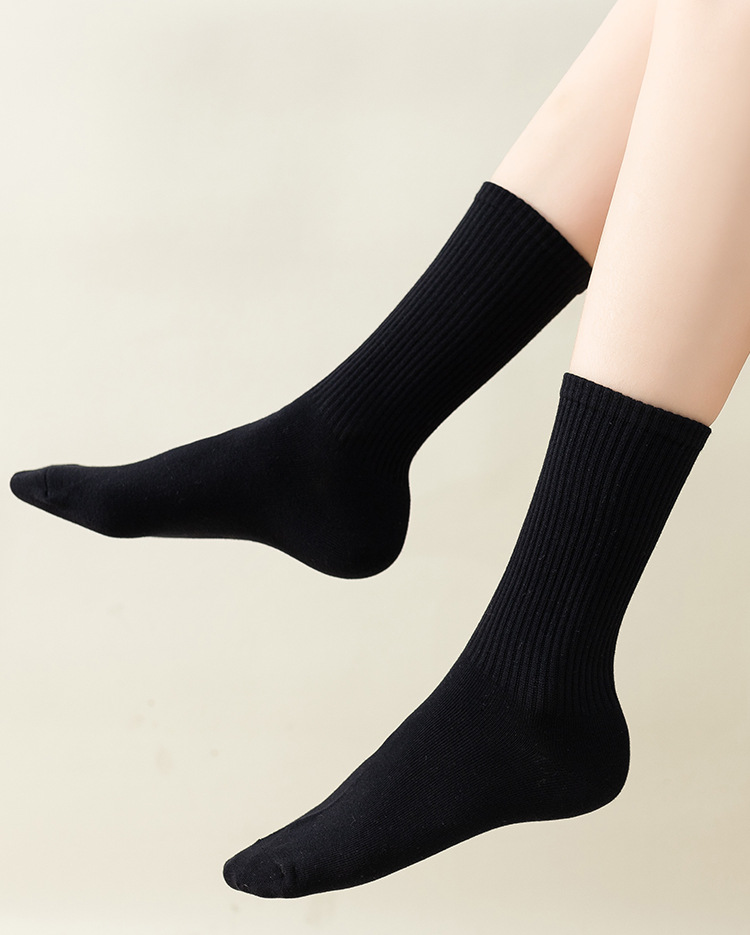 여성용 가을 겨울 중목 양말 순면 땀 흡수 방취 항균 롱 스포츠 양말 흑백 남성용 순면 양말