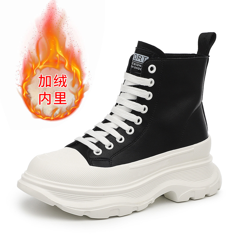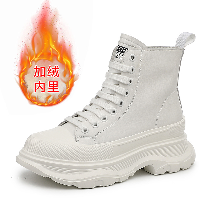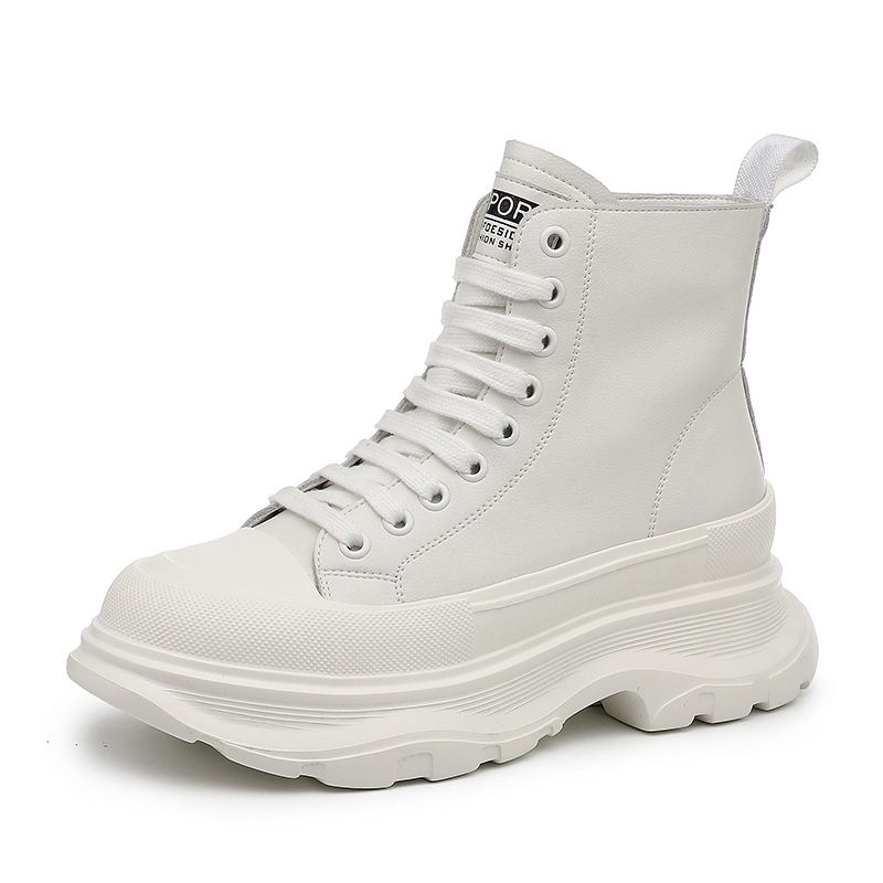 흰색 신발 여성용 두꺼운 밑창 하이탑 2022 새로운 가을 정품 가죽 얇은 모든 매치 두꺼운 밑창 스포츠 캐주얼 캔버스 신발