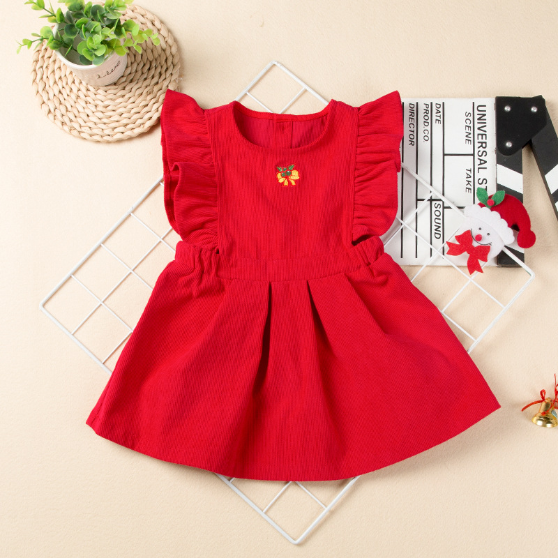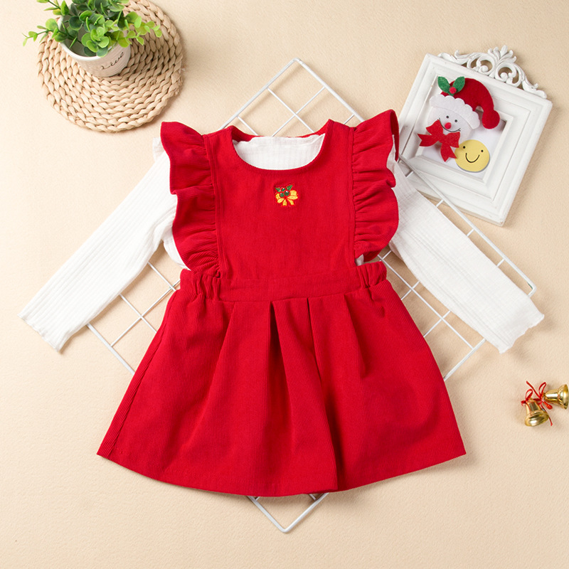 봄 여름 신작 여아 드레스, 하의 셔츠, 빅 레드 민소매 아동 스커트, 긴팔 티셔츠, 공장 직판