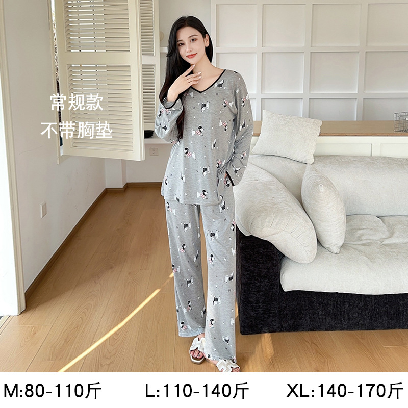 모달 잠옷 여성용 가을 겨울 긴팔 고급스러운 느낌의 큰 사이즈 봄 가을 여성용 가슴 패드가 있는 홈웨어스토어 가기