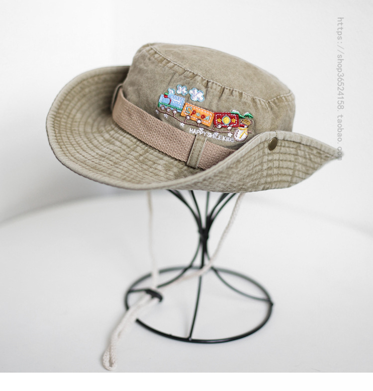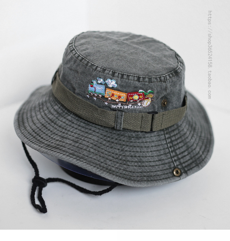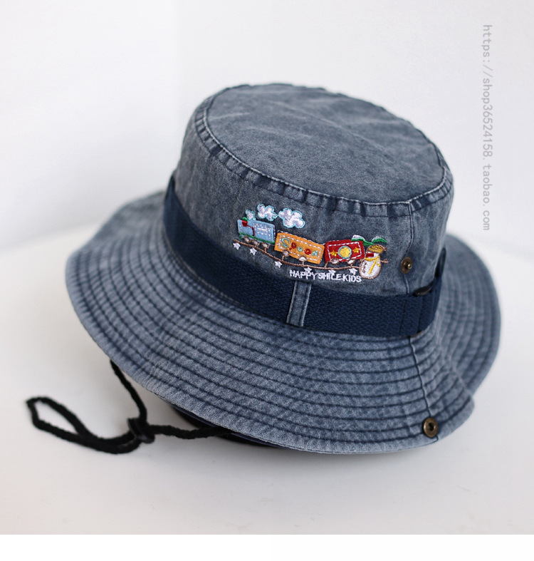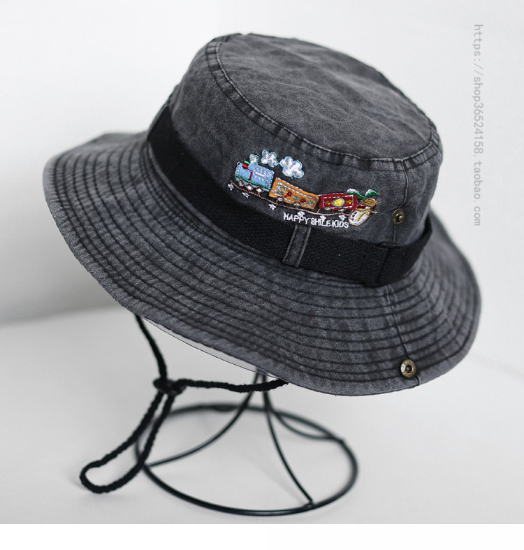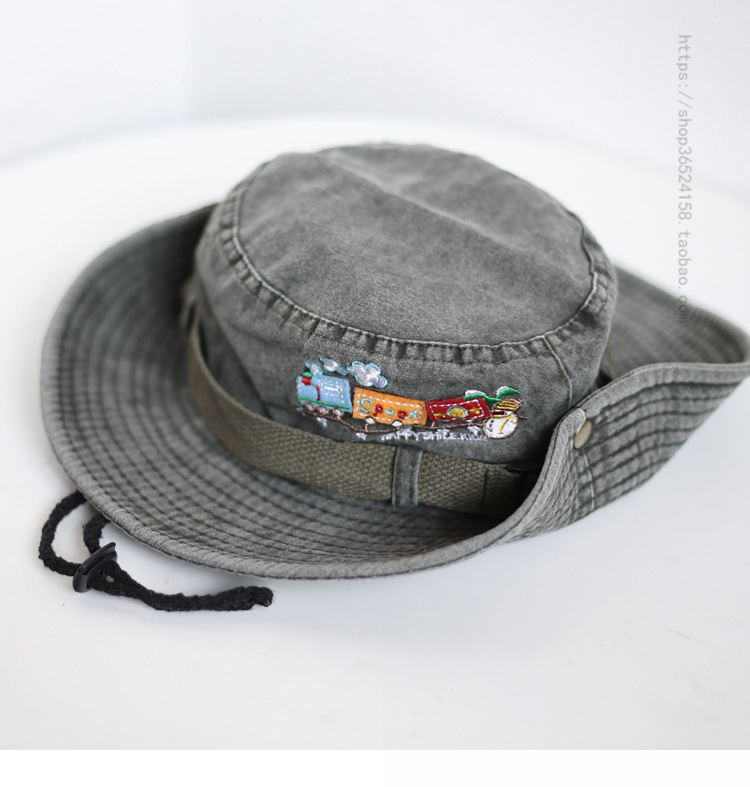 日系大檐水洗做旧牛仔火车刺绣渔夫帽男女工装风户外休闲登山帽