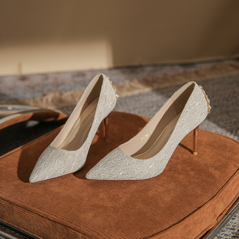 6681-10 연회 원피스 웨딩 원피스 웨딩 신발 신부 신발 라인 석 기질 하이힐 여신 뾰족한 발가락 얇은 굽 신발스토어 가기