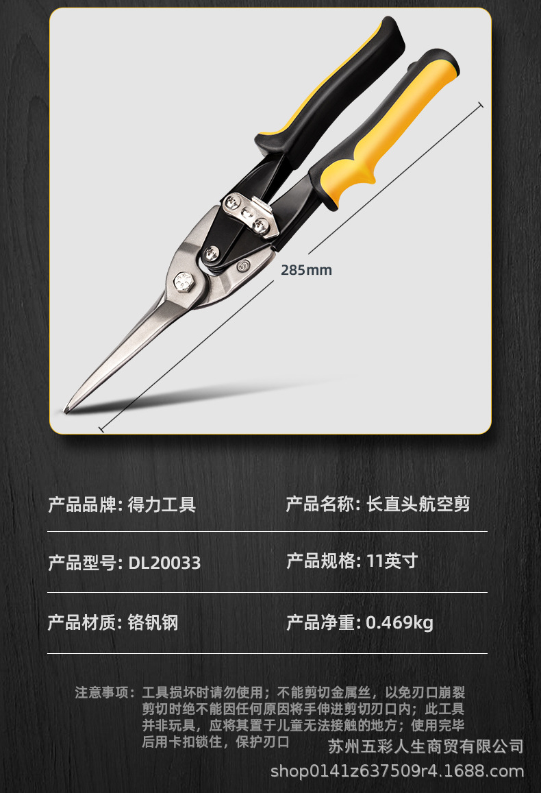 델리 도구 DL20033 고 탄소강 긴 직선 헤드 항공 전단 스테인레스 스틸 플레이트 가위 철 가위 11 인치