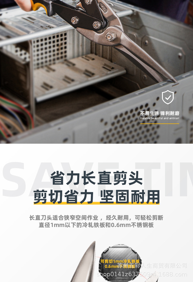 델리 도구 DL20033 고 탄소강 긴 직선 헤드 항공 전단 스테인레스 스틸 플레이트 가위 철 가위 11 인치스토어 가기