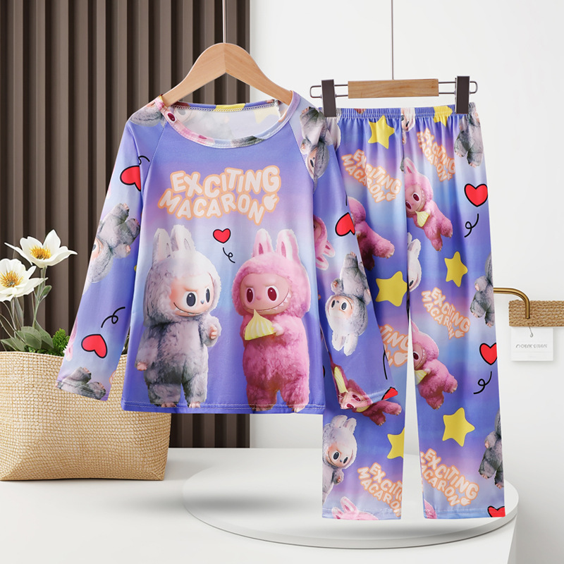 어린이 에어컨 옷 세트 여아 잠옷 아기의 봄과 가을 긴팔 바지 2 종 세트 어린 소녀의 가정복 여름 옷