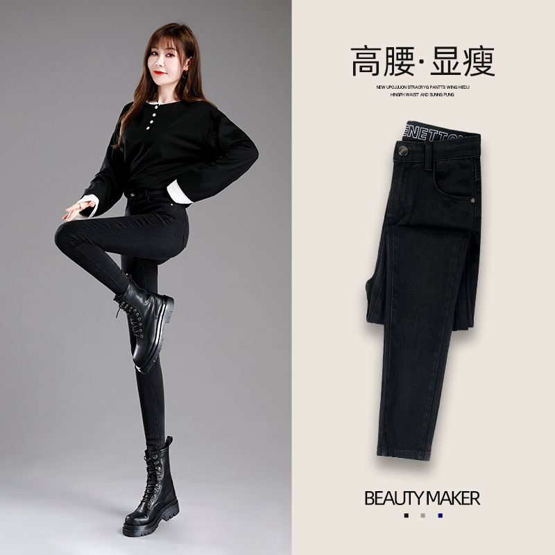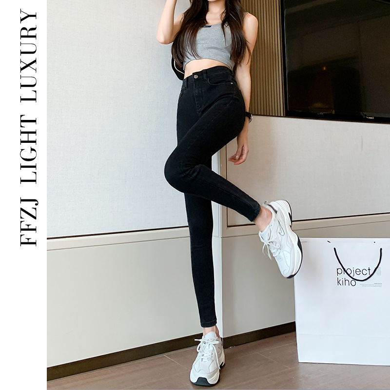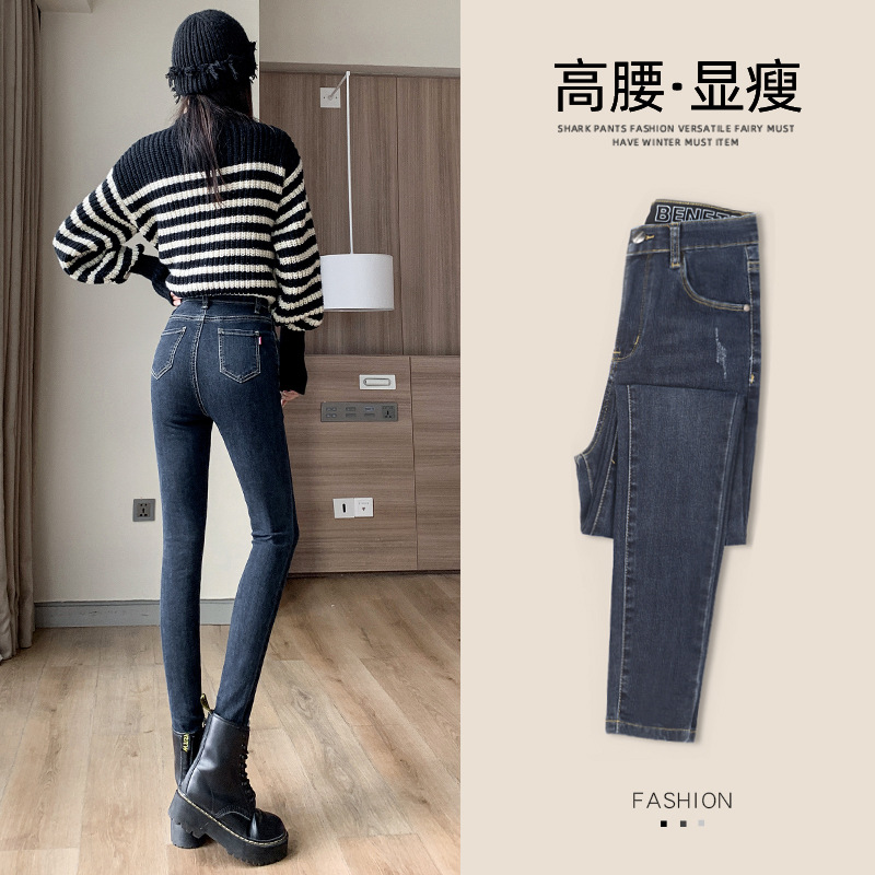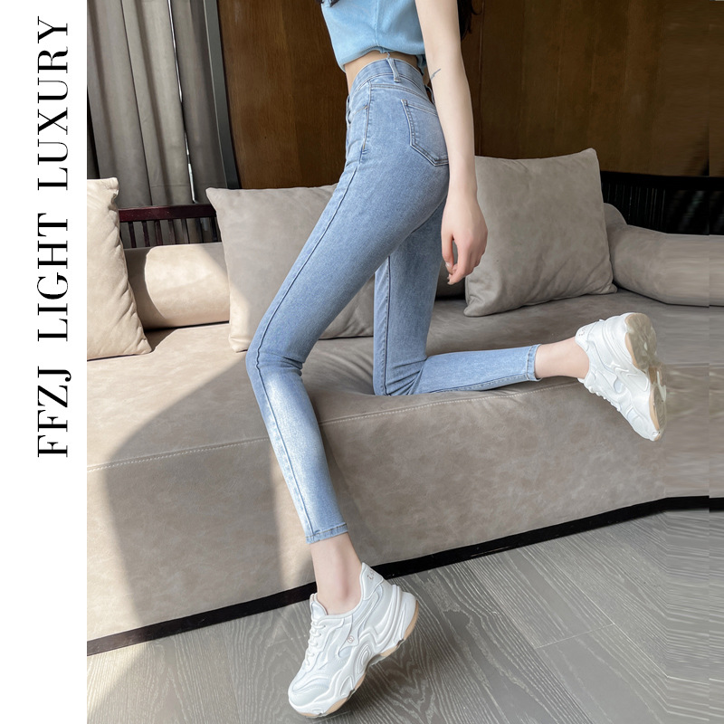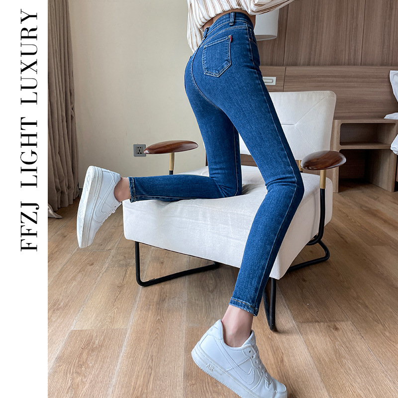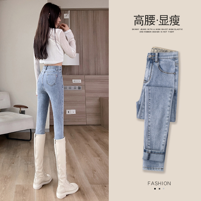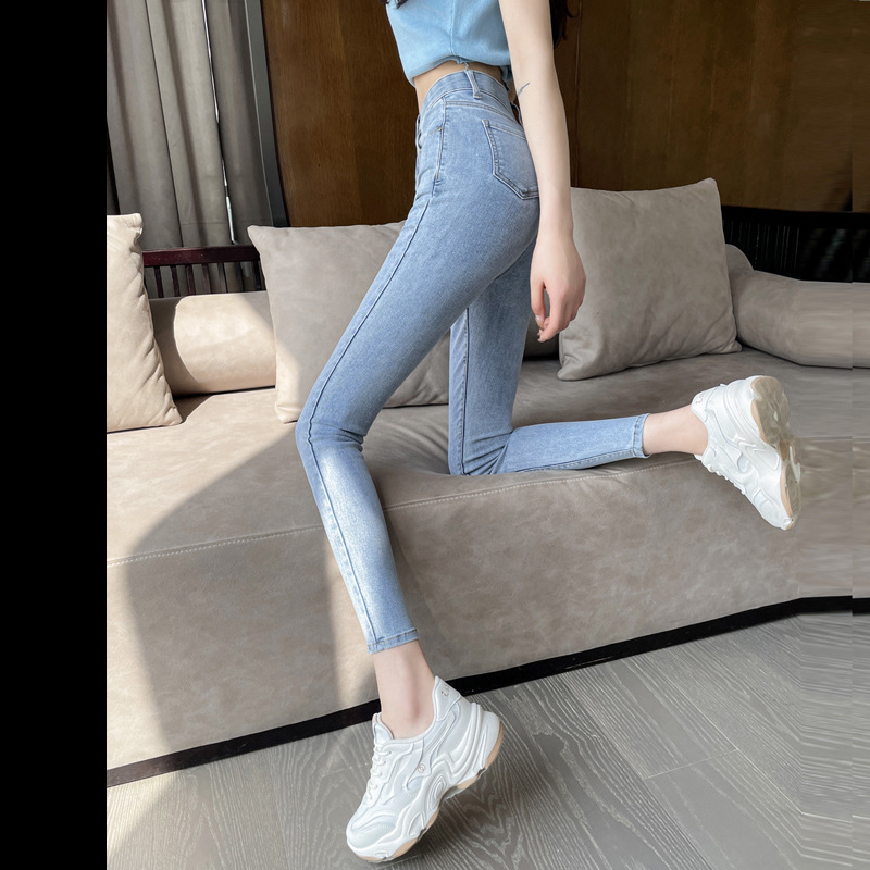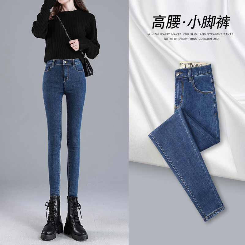 진청색 여성용 청바지 2025년 봄 가을 신상 하이웨이스트 슬림핏 신축성 있는 여성용 펜슬 팬츠스토어 가기