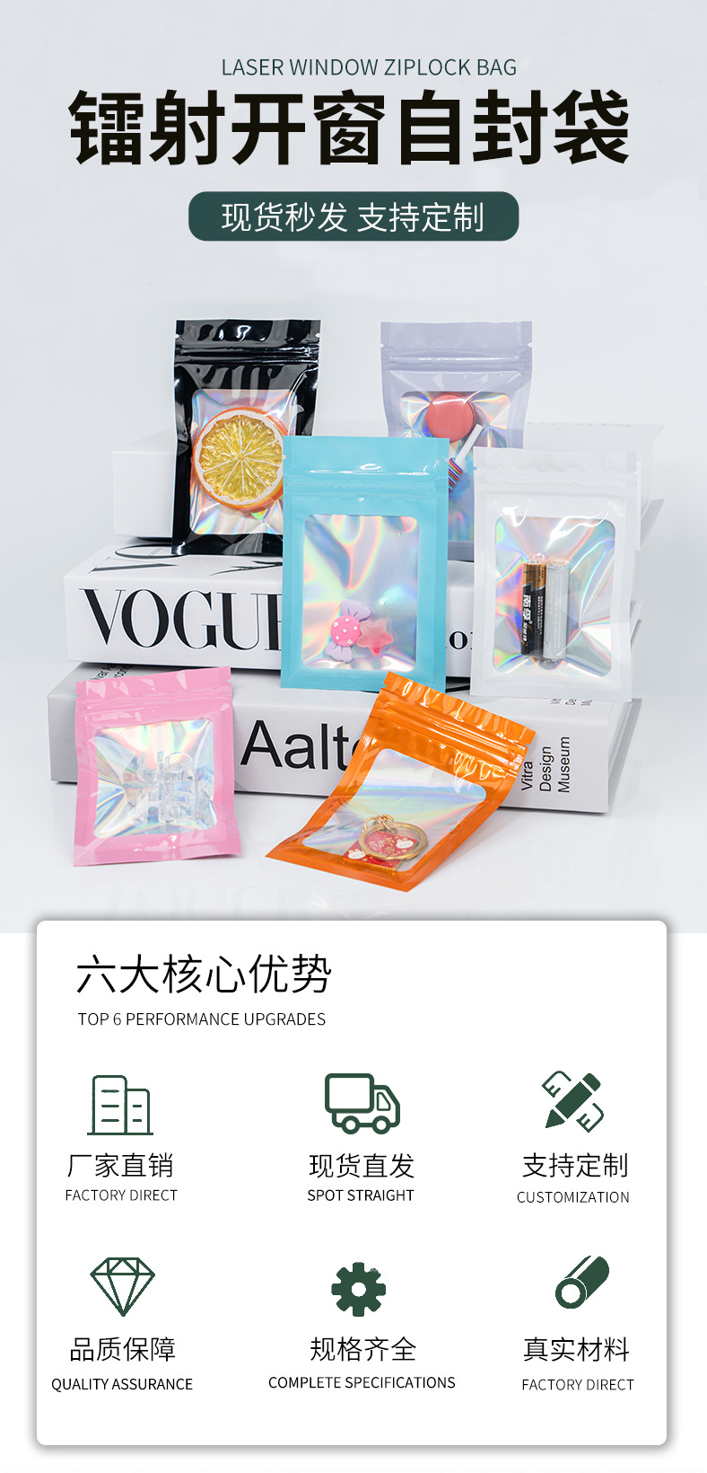 국경 간 컬러 창 레이저 지 플락 가방 투명 음과 양 골질 가방 보석 씰링 가방 봉인 된 플라스틱 지 플락 가방