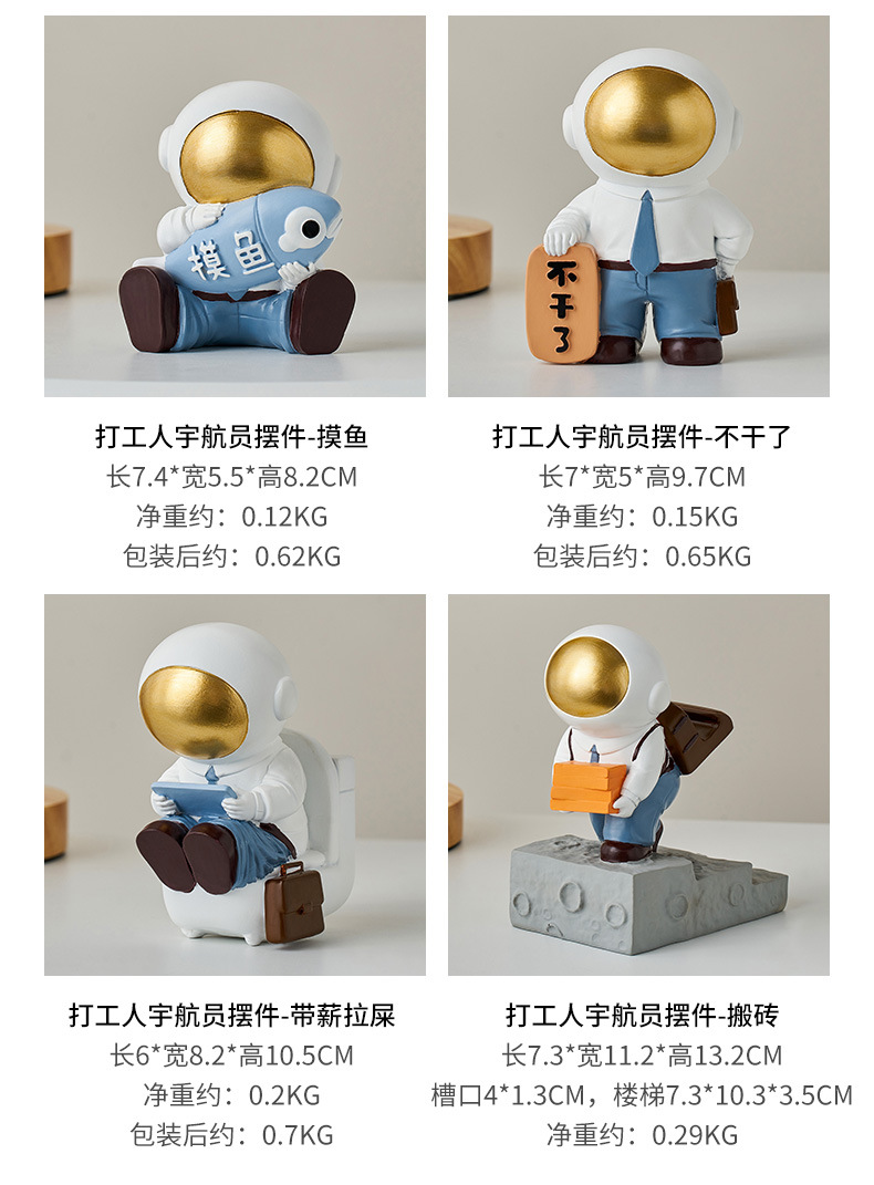 정서적 안정성 장식품 귀여운 감압 및 치유 작은 개체 사무실 데스크탑 워크 스테이션 장식 우주 비행사 장식