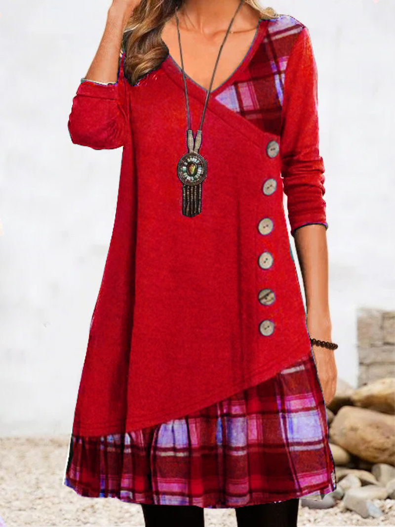 유럽과 미국의 국경 간 여성 의류 2025 Amazon 독립 스테이션 가을 겨울 새로운 스타일 여성용 캐주얼 스플 라이스 긴팔 드레스스토어 가기