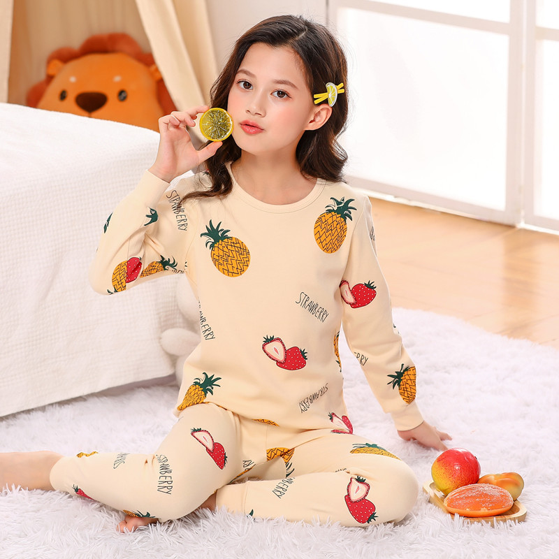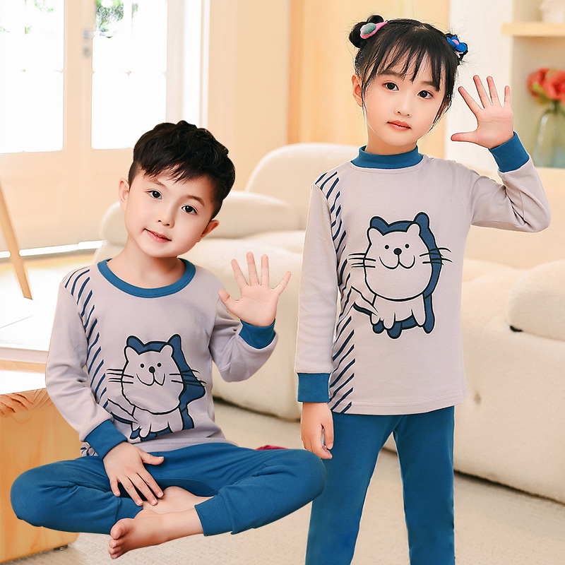 2024 아동 의류 아동 속옷 세트 순수 코튼 홈 의류 아동 가을 옷 긴 바지 봄, 가을 소녀 잠옷 얇은 도매스토어 가기