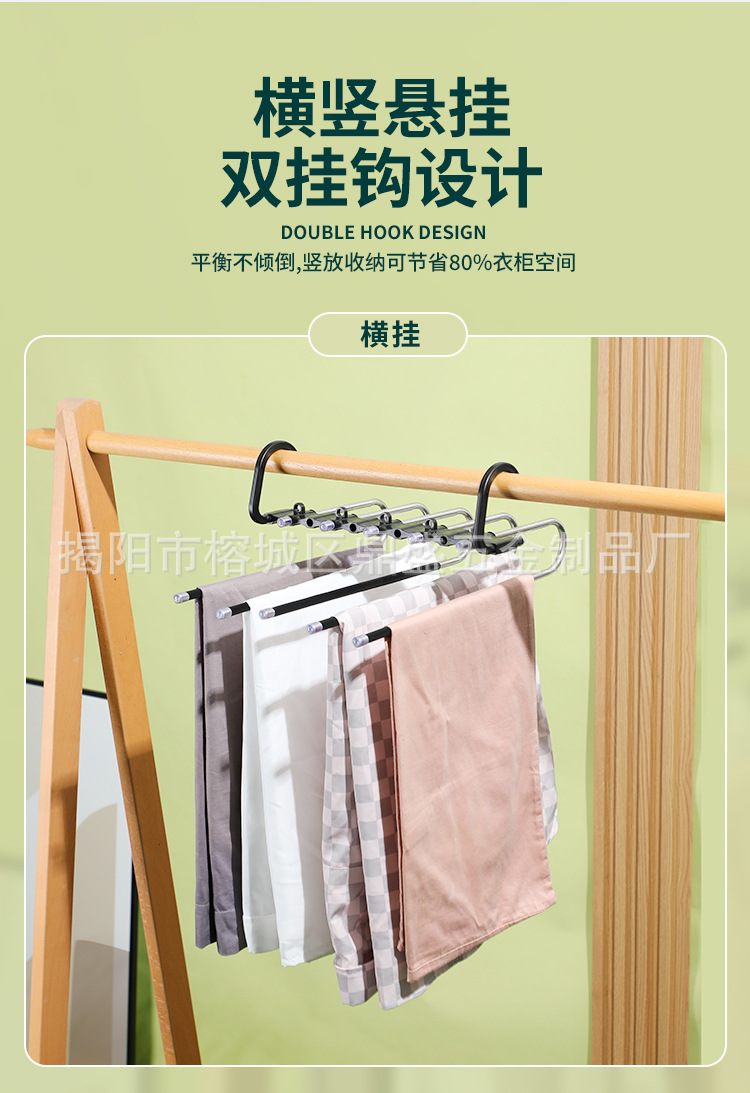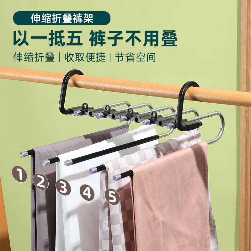스테인레스 스틸 가정용 접이식 바지 랙 다기능 미끄럼 방지 보관 걸이 휴대용 다층 매직 바지 클립