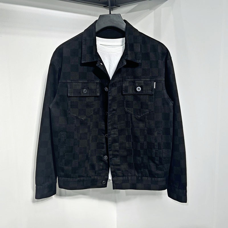 2022 봄과 가을 새로운 남자의 격자 무늬 올드 플라워 캐주얼 블랙 데님 재킷 유행 느슨한 유행 브랜드 재킷 남성용스토어 가기