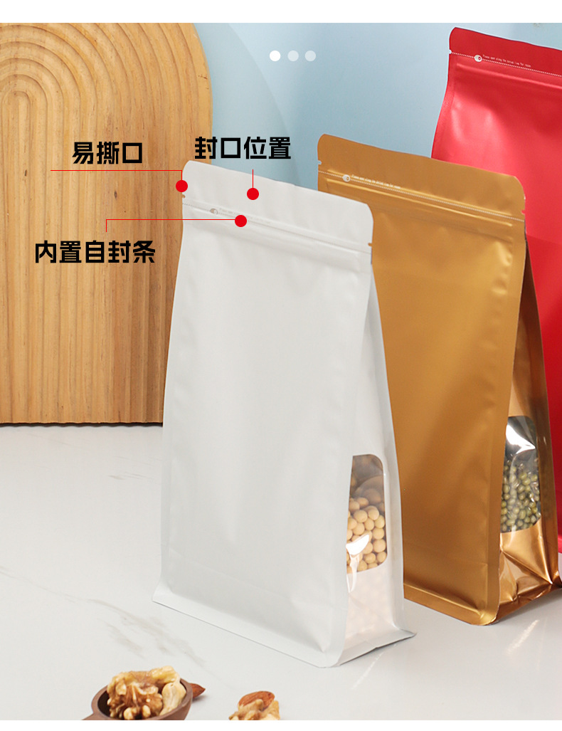 컬러 팔각형 측면창 무광 알루미늄 호일 지퍼백 차 커피 고양이/강아지 사료 자립형 포장백 밀봉백