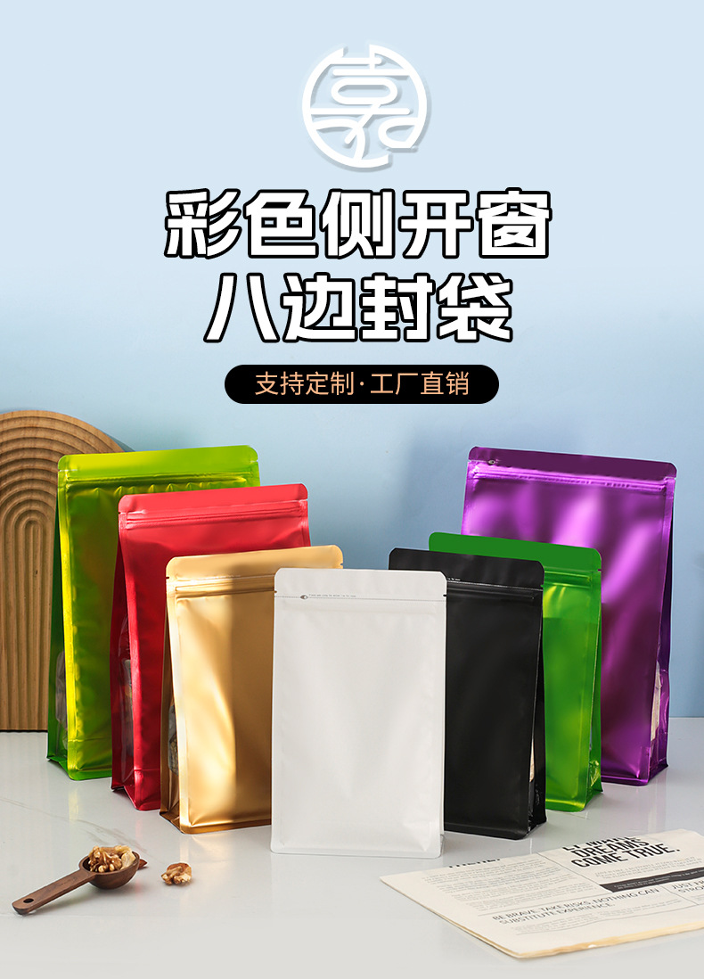 컬러 팔각형 측면창 무광 알루미늄 호일 지퍼백 차 커피 고양이/강아지 사료 자립형 포장백 밀봉백스토어 가기
