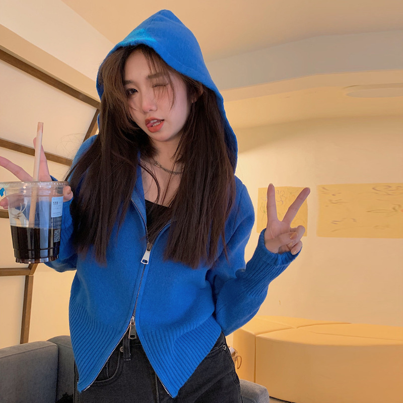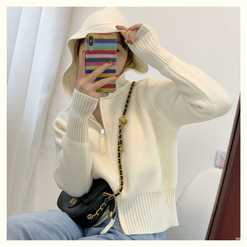 후드 캐주얼 니트 카디건 여성용 2022 가을과 겨울 새로운 루즈한 디자인 더블 지퍼 여성용 심플 스웨터 재킷스토어 가기