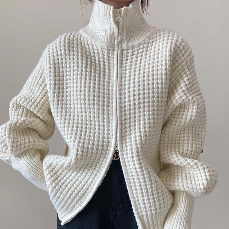 高领拉链毛衣外套女2022秋冬新款奶油系软糯时尚减龄加厚针织开衫¥47立即采购