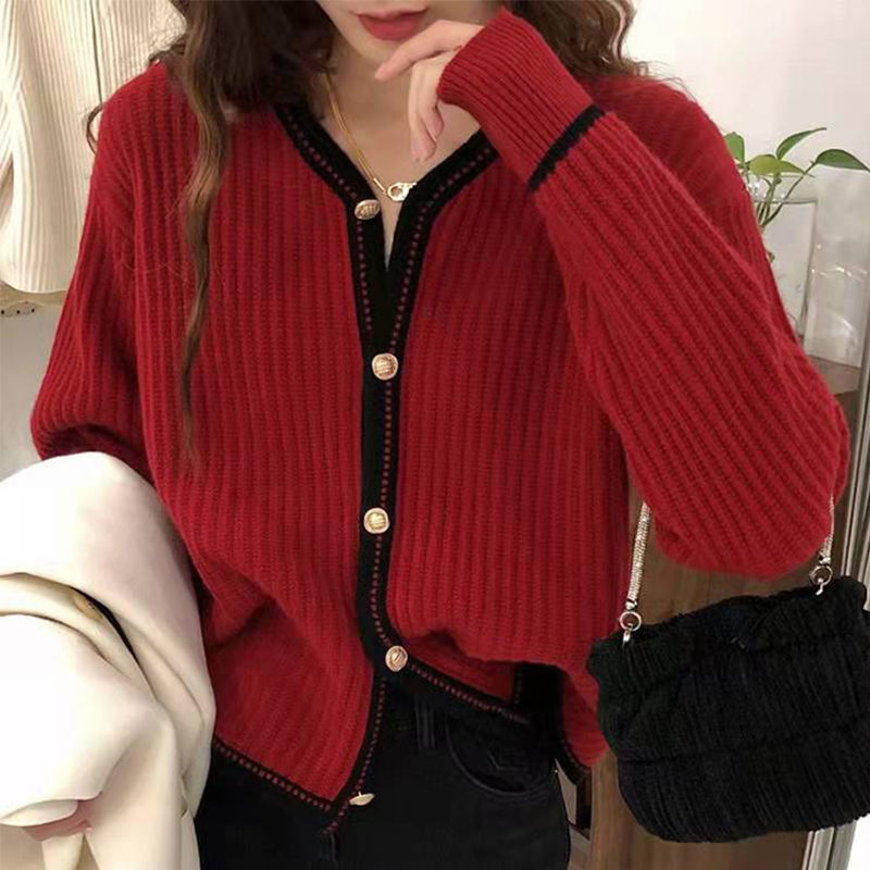 法式小香风V领针织开衫女2022秋季新款宽松撞色坑条毛衣女外套¥37立即采购