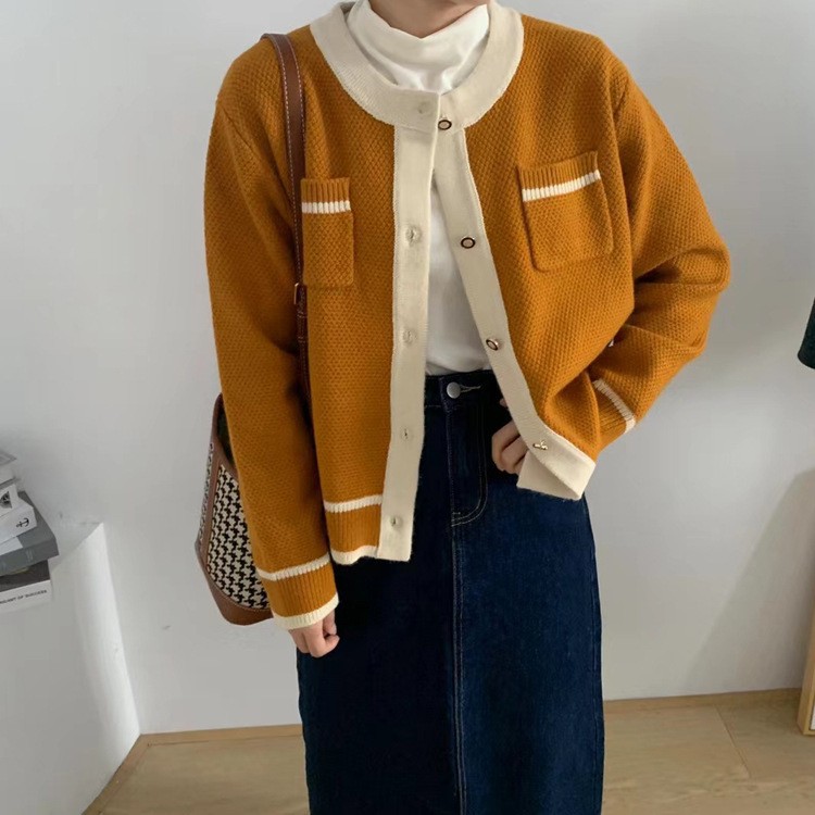 小香风撞色针织开衫女气质学院风2022秋季新款甜美减龄毛衣外套女¥37立即采购