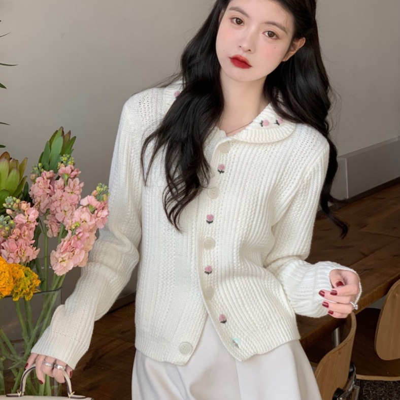 法式刺绣针织开衫女2022秋季新款宽松甜美温柔风翻领毛衣女外套¥44立即采购