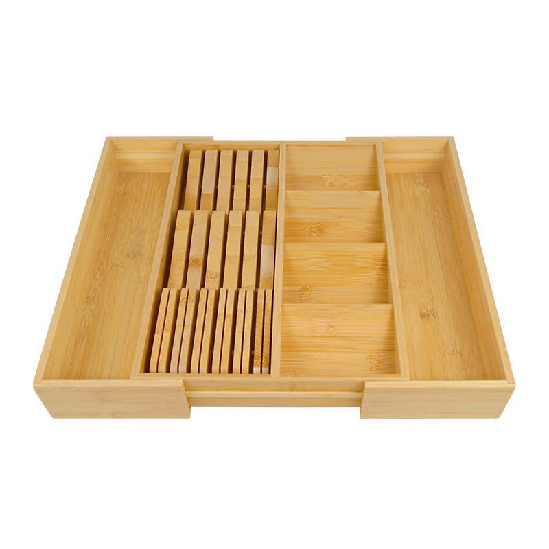 대나무 개폐식 식기 보관 상자 부엌 서랍 구획 마감 상자 단단한 나무 멀티 구획 젓가락 구획 보관 상자스토어 가기