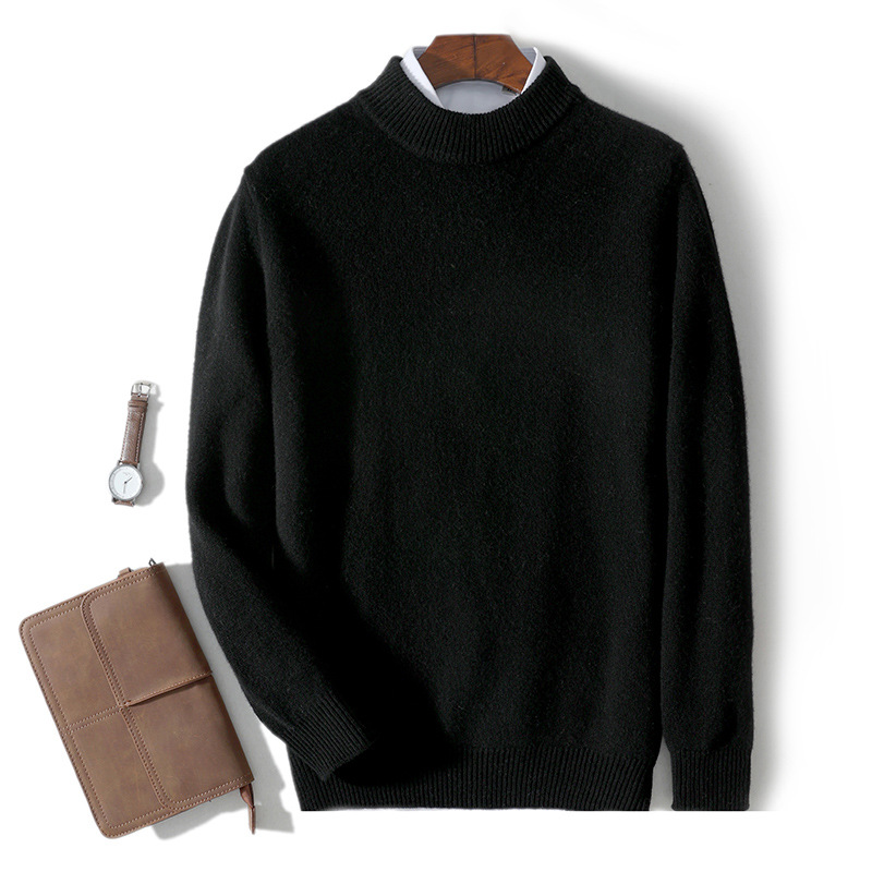 두꺼운 울 스웨터 남성용 가을과 겨울 새로운 하프 터틀넥 터틀넥 비즈니스 캐주얼 스웨터 느슨한 모든 매치 캐시미어 베이스 셔츠