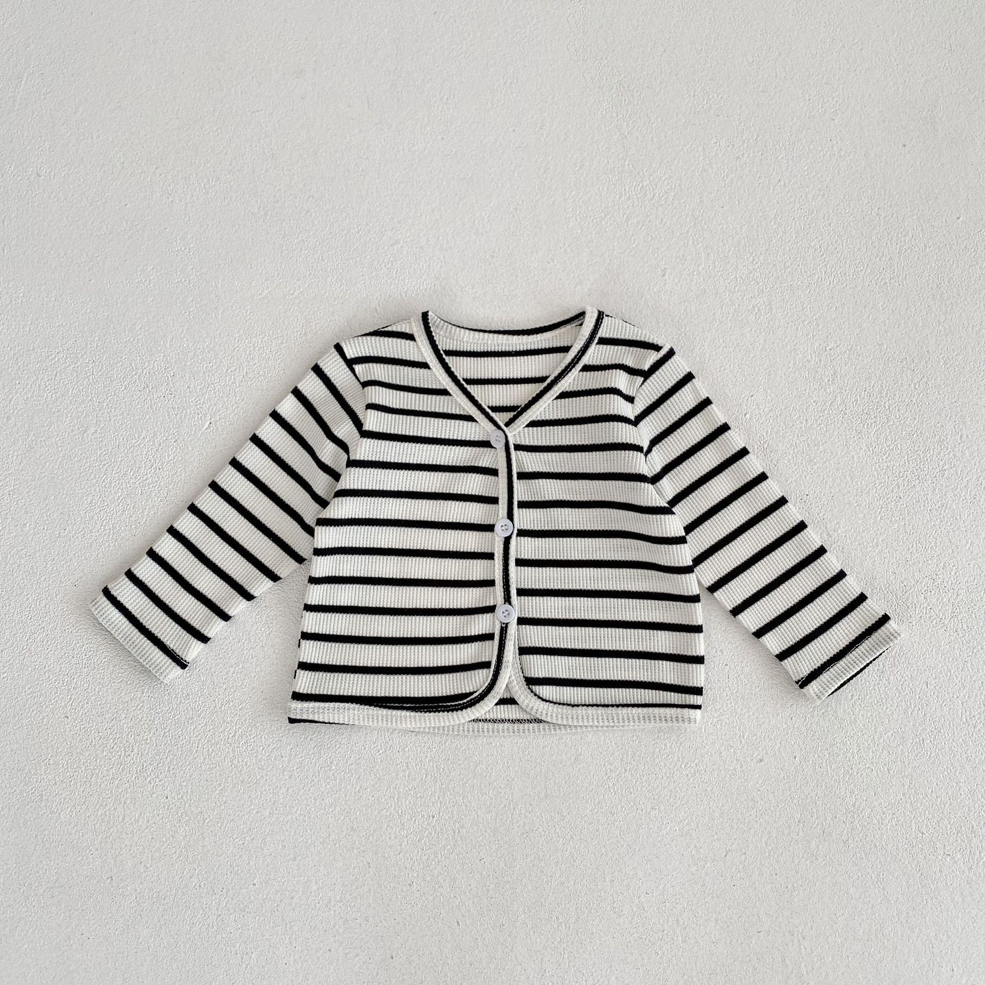 2025 가을 유아 및 어린이 여아 패션 긴팔 하의 긴팔 하렘 + 스트라이프 브이넥 작은 코트