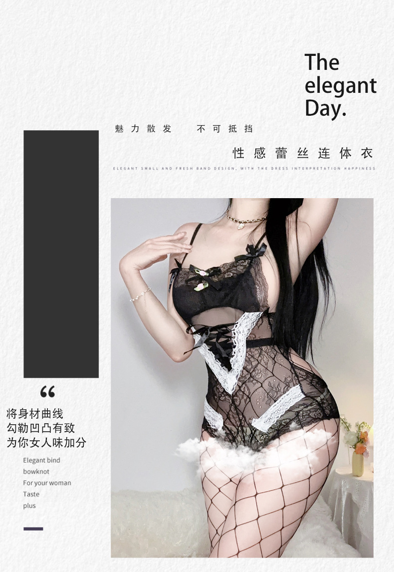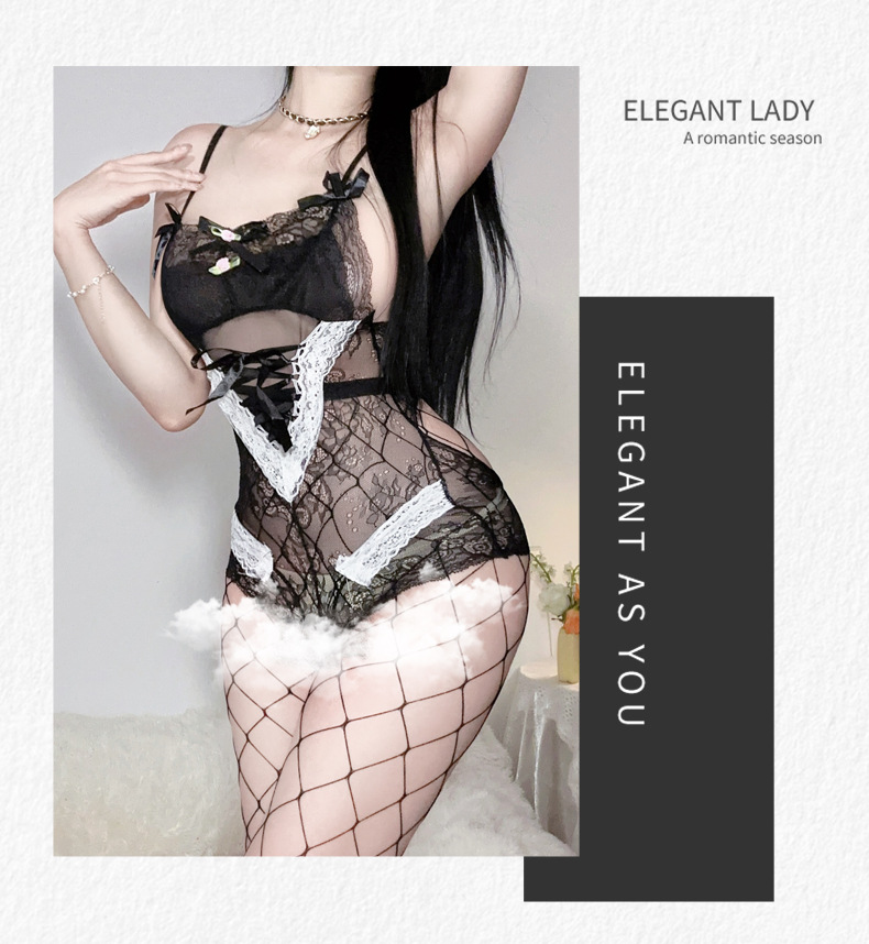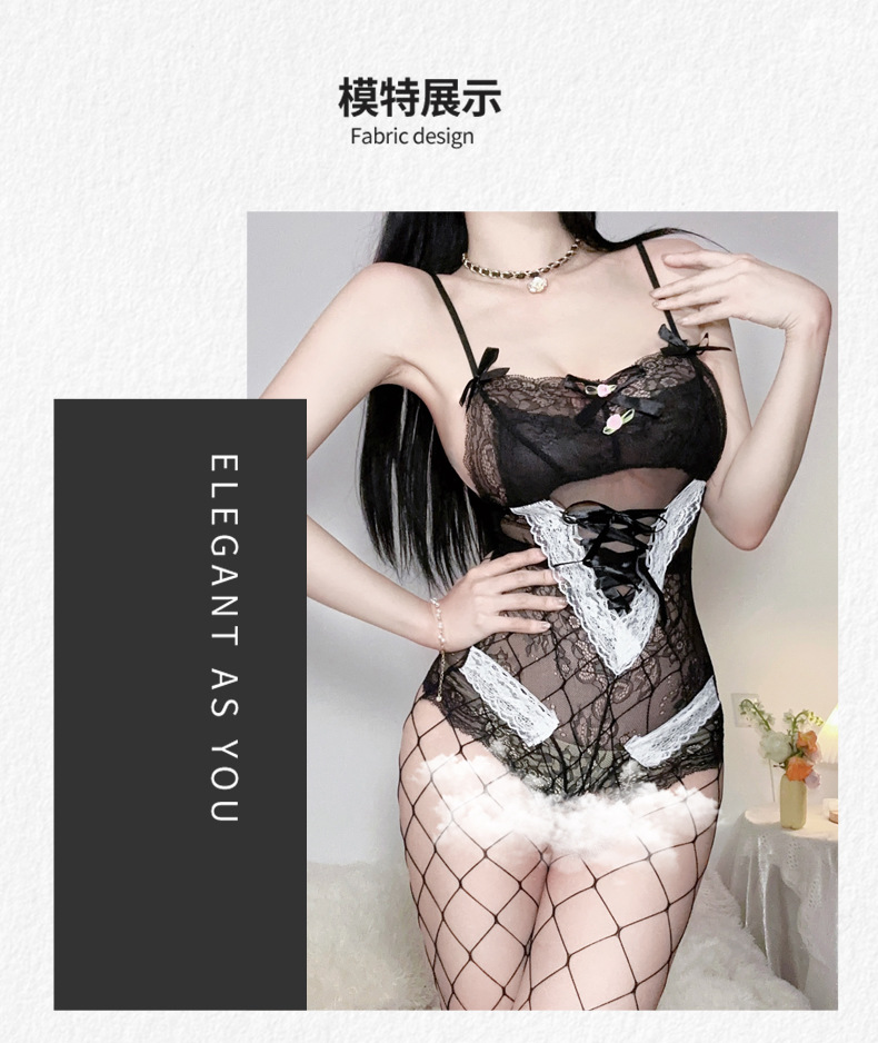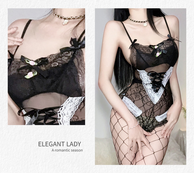 소녀 스타일 섹시 속옷 작은 신선한 핑크 잠옷 다시 크로스 스트랩 섹시 슈퍼 짧은 그물 스타킹 원피스 세트